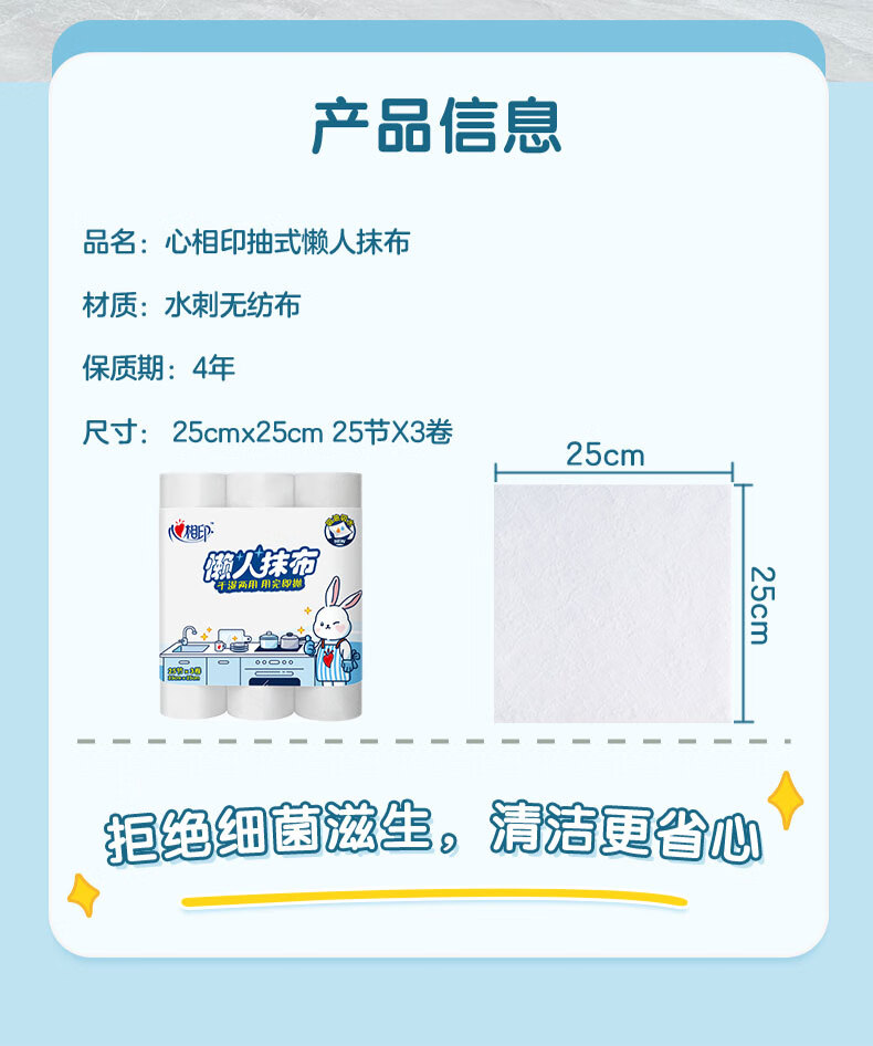 JXF075(单包)心相印卷式懒人抹布25张*3卷 ZXA0000477