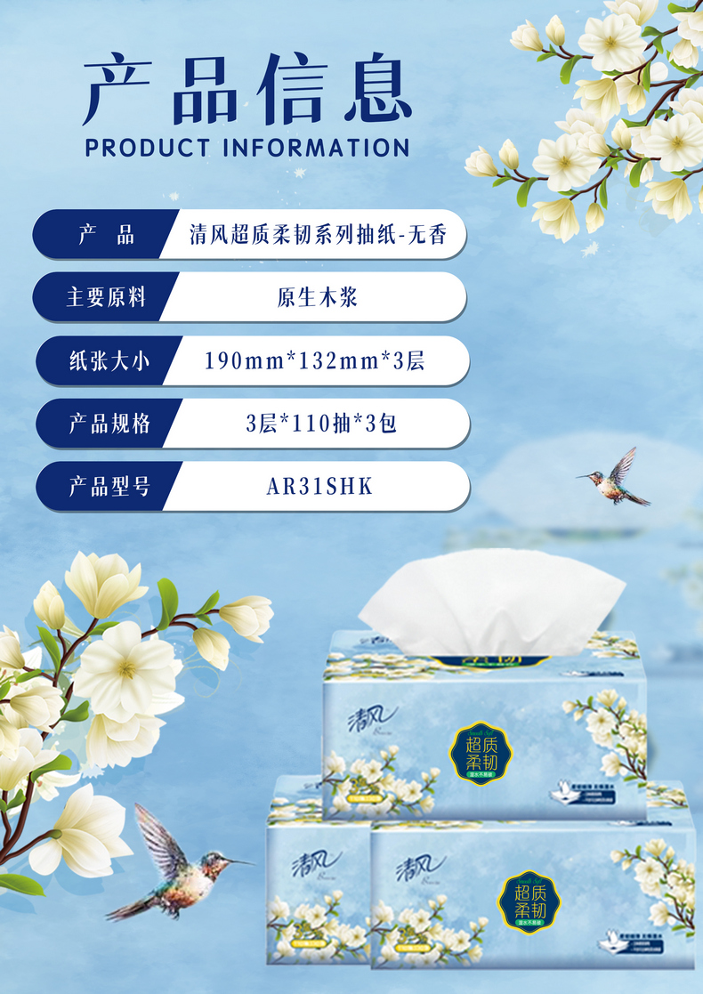 清风超质柔韧3层110抽/包 3包/提抽纸 AR31SHK