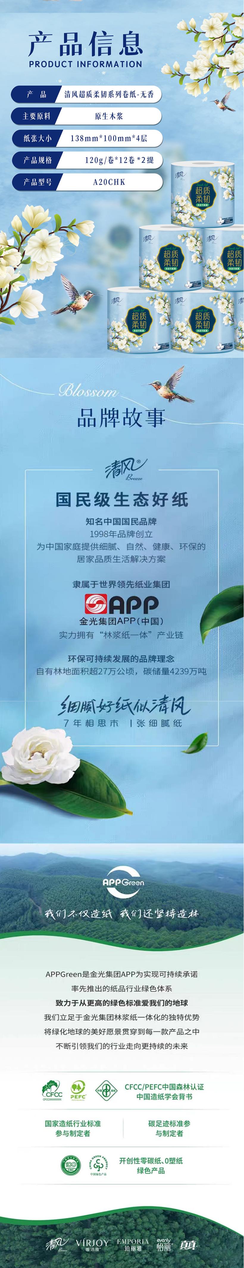清风超质柔韧4层120克/卷 12卷/提*2提 卷纸