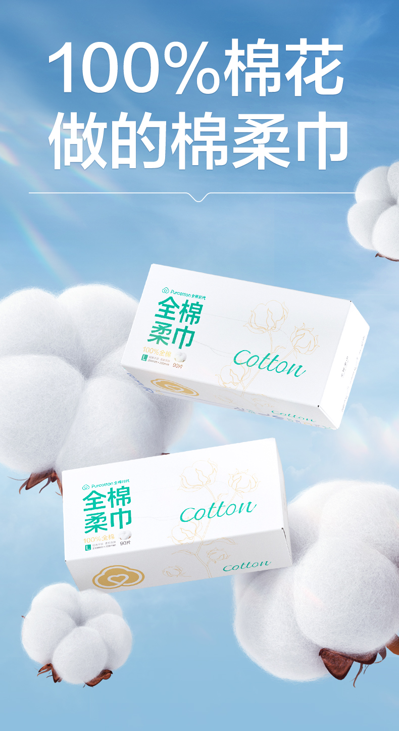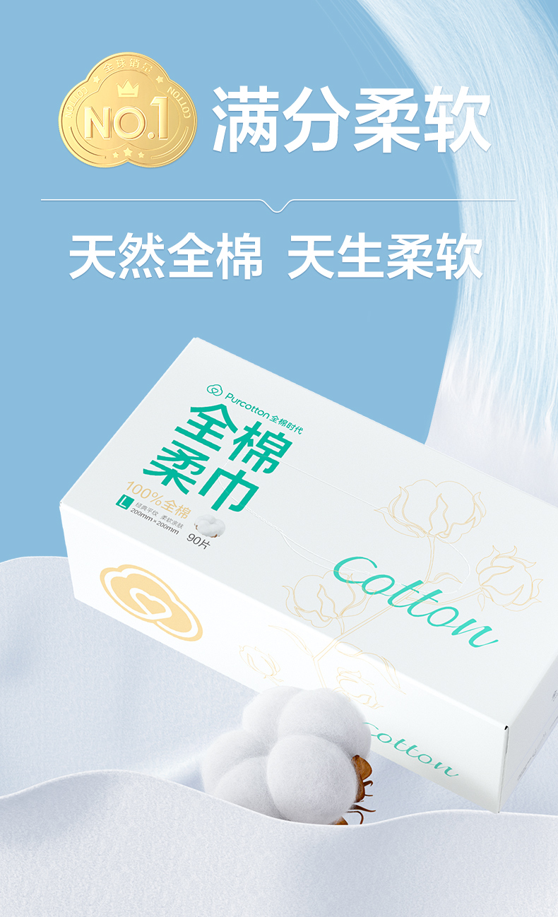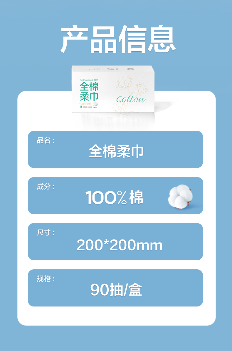 全棉时代盒装棉柔巾20*20CM 90片/盒 PPJ24700072