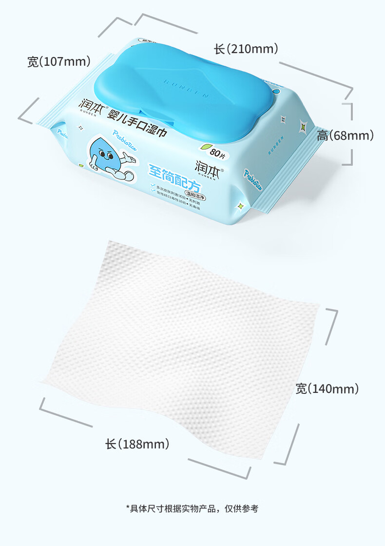 润本婴儿手口湿巾80片三包装 80抽×3包(240抽)