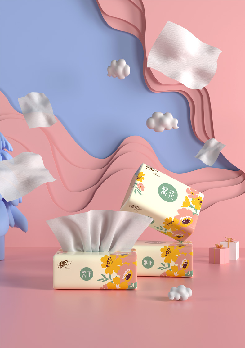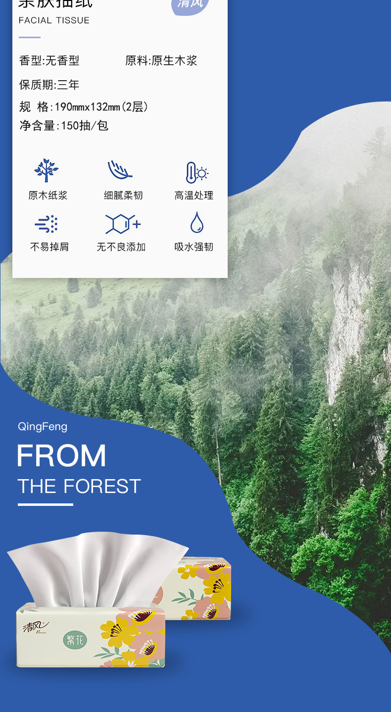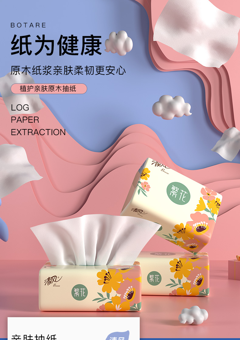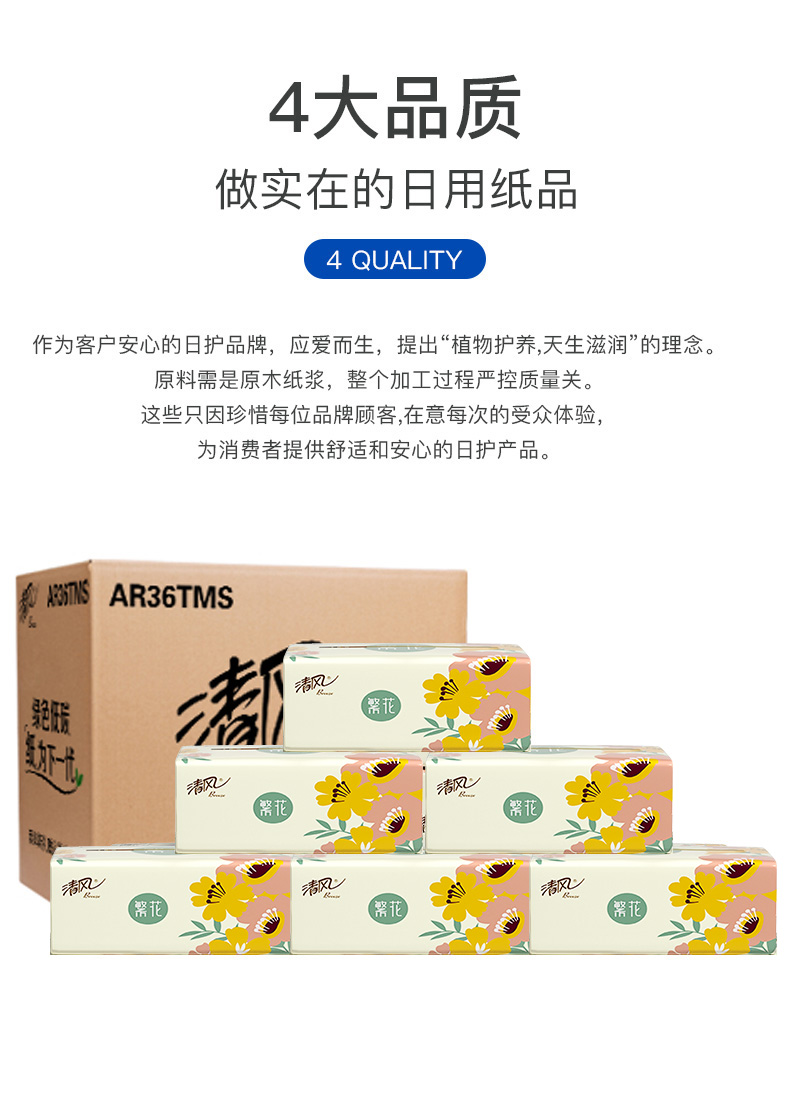 清风繁花系列2层150抽3连包软抽纸AR36TMS