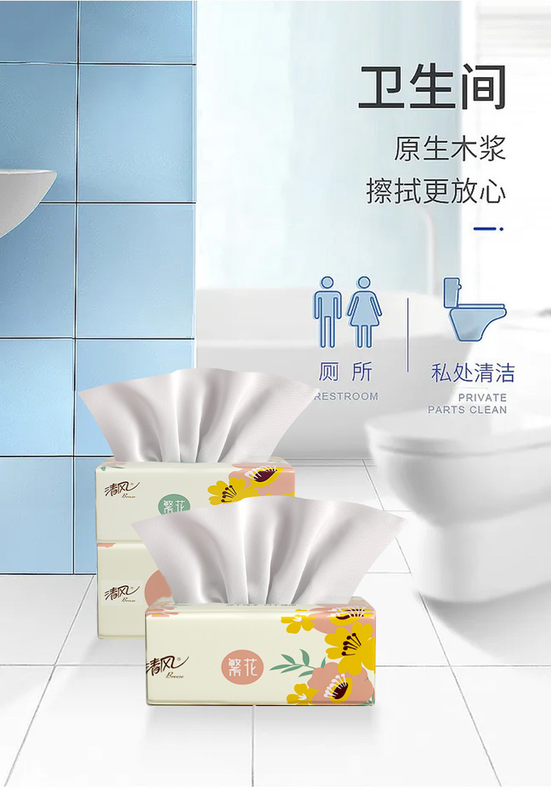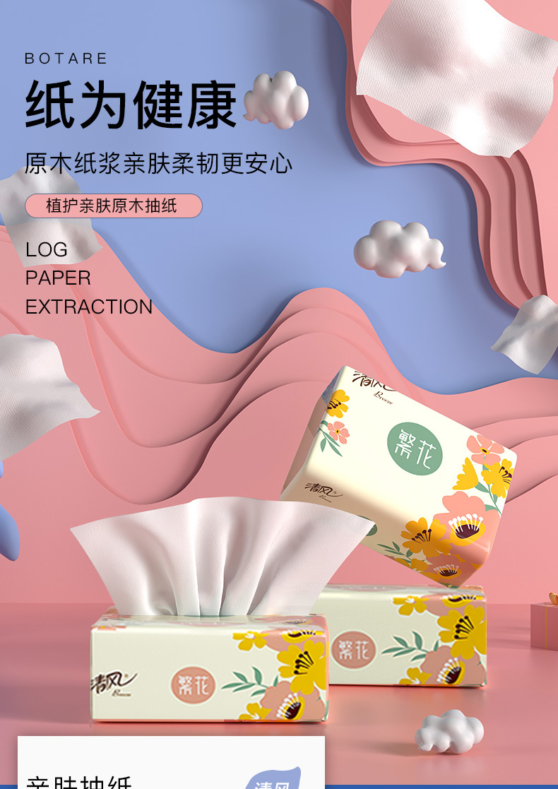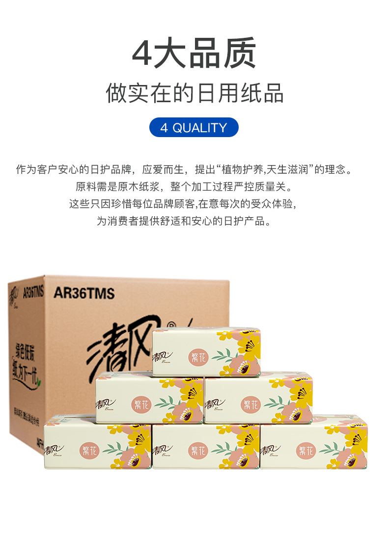 清风繁花系列3层100抽6连包软抽纸AR62TMS3