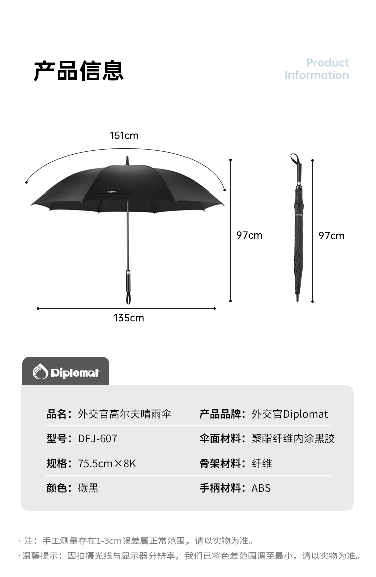 外交官高尔夫晴雨伞-碳黑DFJ-607