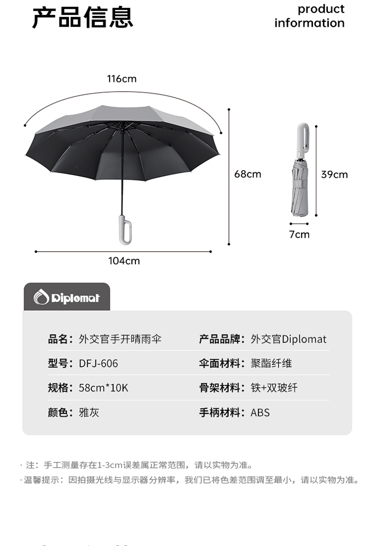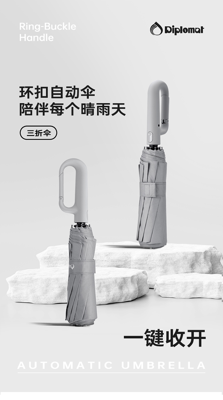 外交官环扣自动晴雨伞-雅灰DFJ-606