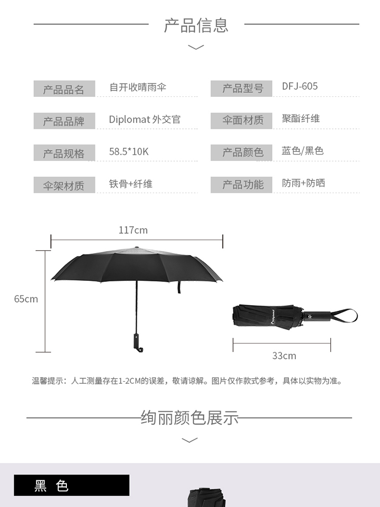 外交官自开收晴雨伞-黑色DFJ-605-1/蓝色DFJ-605-2