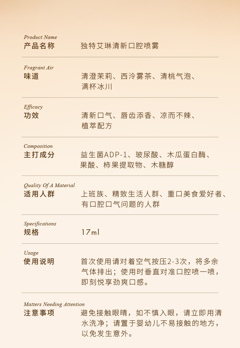 独特艾琳清新口腔喷雾17ml