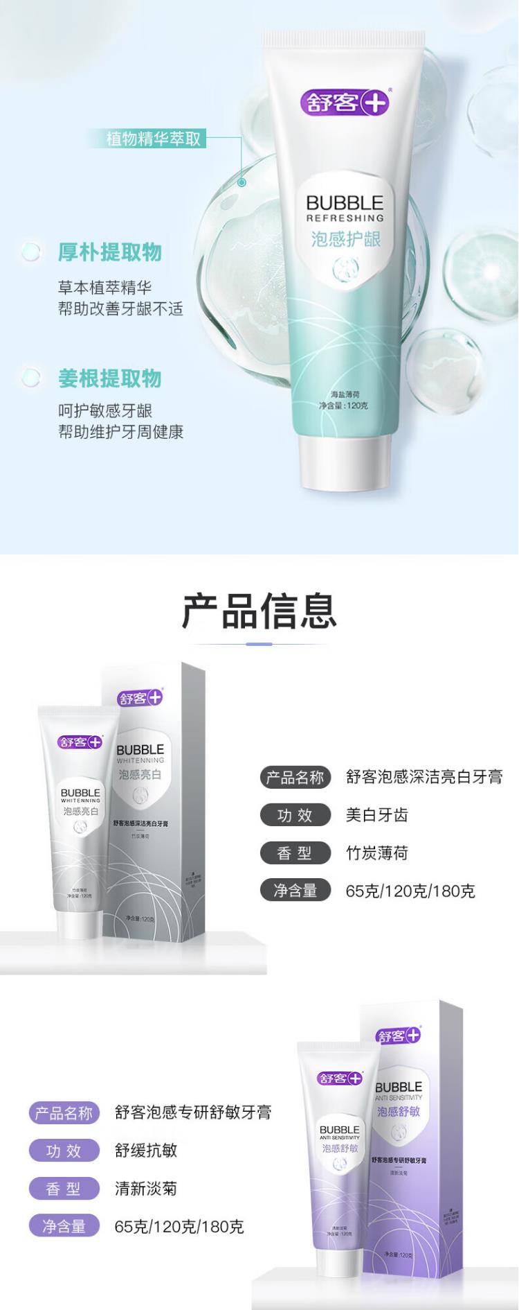 舒客泡感植萃护龈牙膏180克