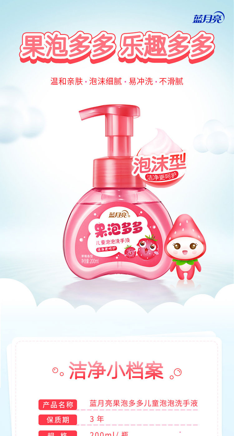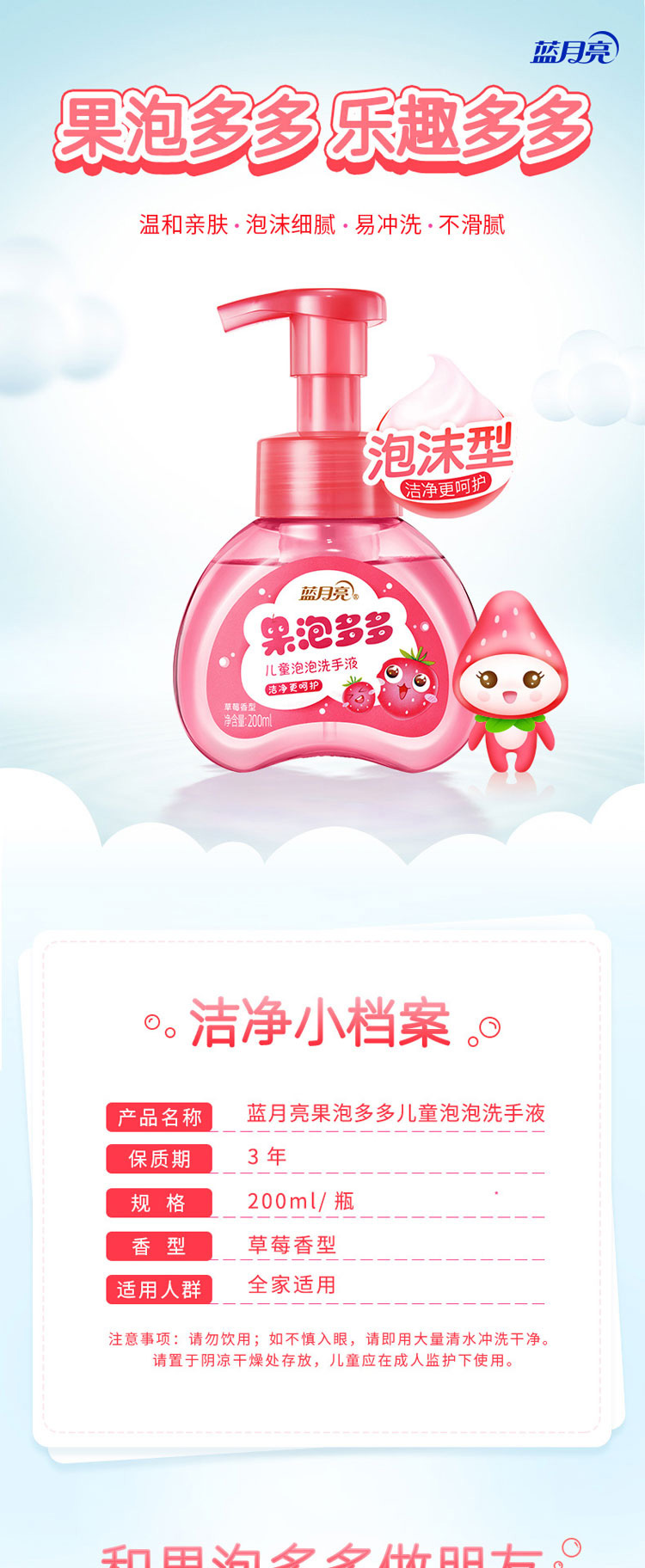 蓝月亮果泡多多草莓儿童泡泡洗手液200g-10001679