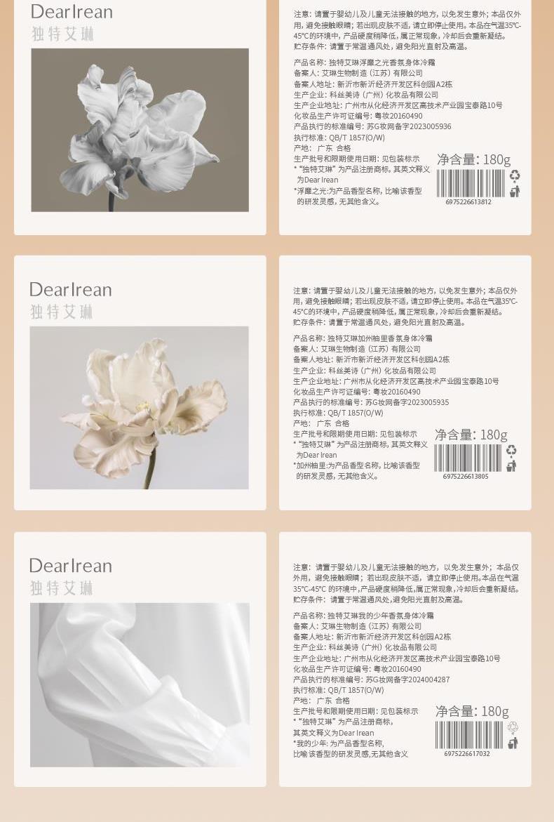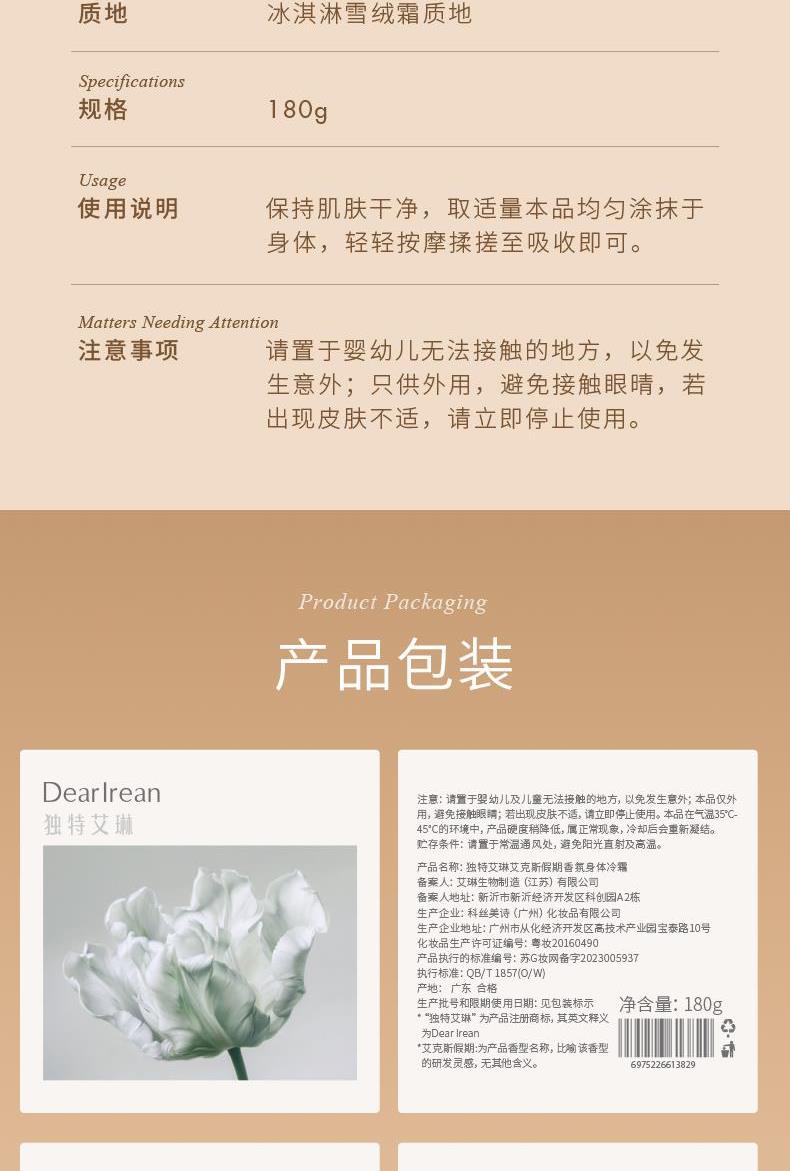 独特艾琳身体冷霜180g (玻璃瓶装)