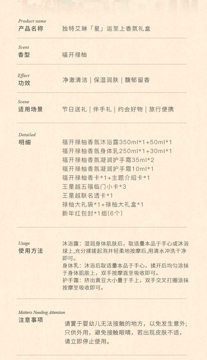 独特艾琳福开禄柚明星礼盒-五福临门·星运至上香氛礼盒·红色丝带