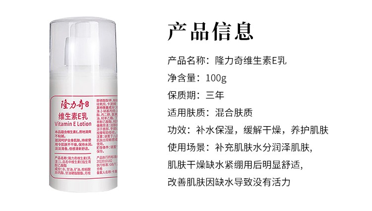 名称: 隆力奇维生素E乳 保湿滋润防干燥 花香型 100g