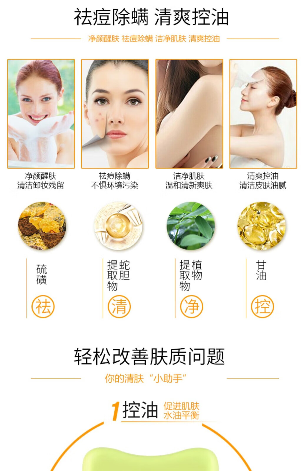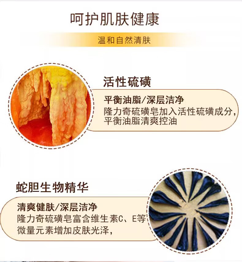 蕴含蛇胆生物精华素、活性硫磺等成分,温和抑菌;