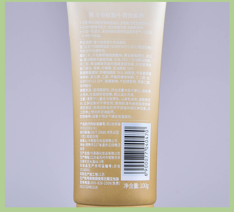 名称:隆力奇蛇胆牛奶洗面奶100g