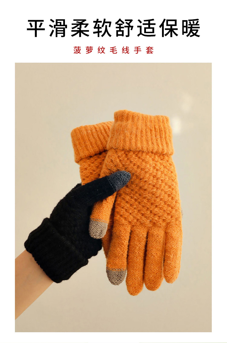 菠萝纹毛线手套(随机黑/白/黄/灰/粉) 1套