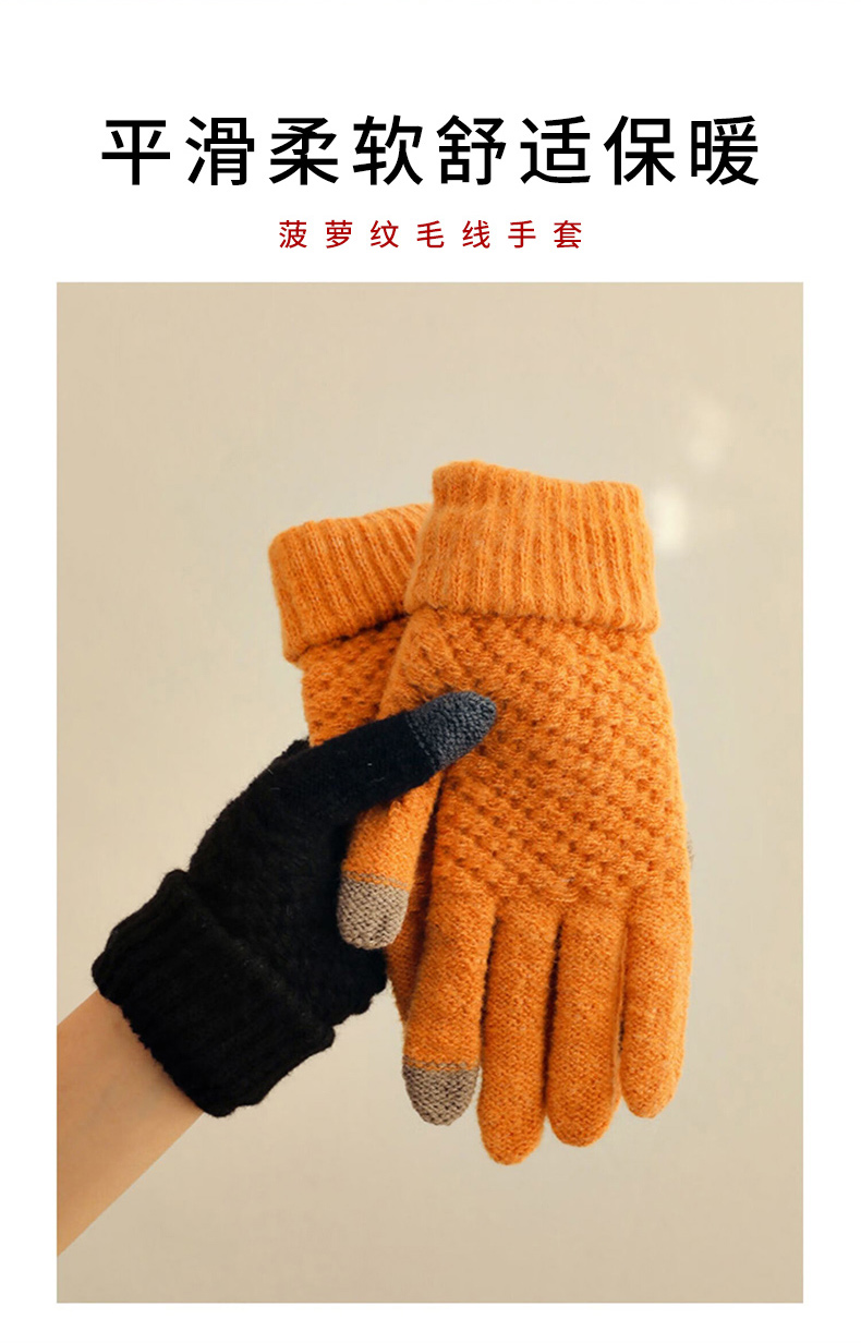菠萝纹毛线手套(随机黑/白/黄/灰/粉) 1套