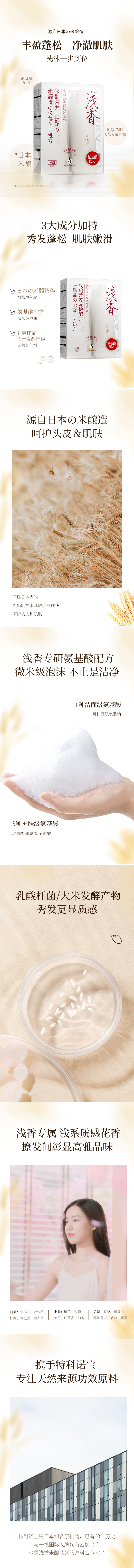 浅香(包销款)米酿氨基酸洗发乳(丰盈型)+浅香米酿氨基酸沐浴露套装500g+500g