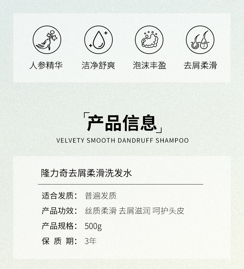 产品功效:丝质柔滑去屑滋润 呵护头皮
