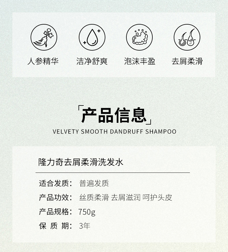 产品功效:丝质柔滑去屑滋润 呵护头皮