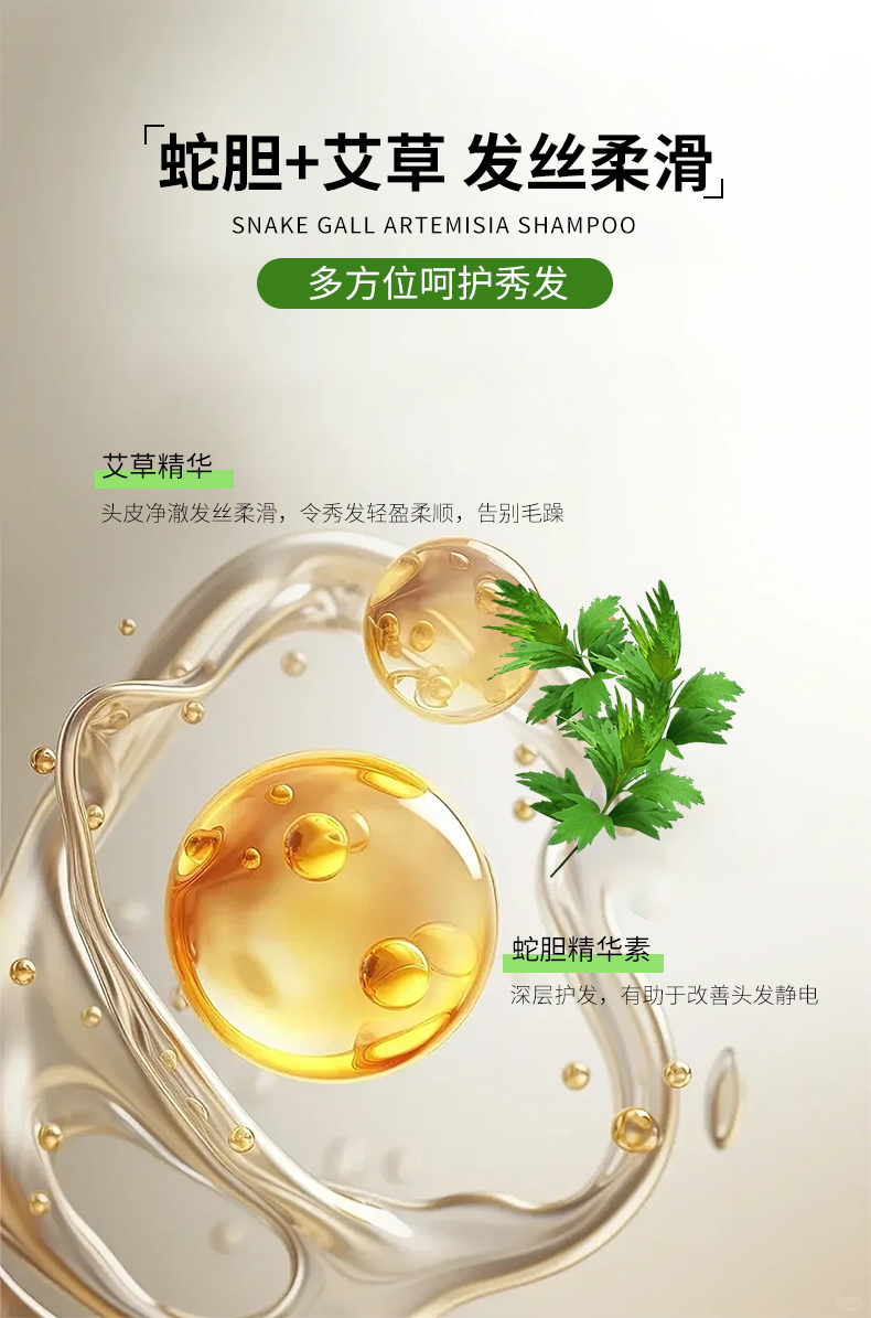 1.蛇胆艾草精华:双重草本精粹抑制头屑,根源清洁控油;