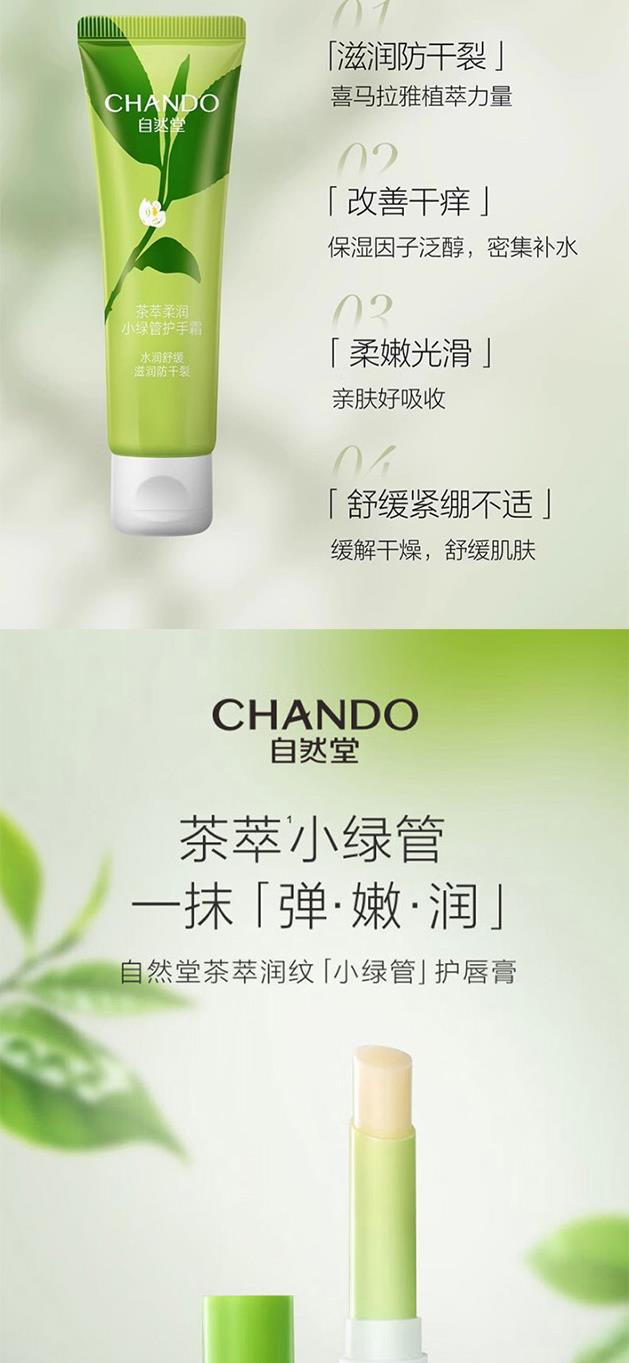 自然堂茶萃润纹小绿管护唇膏3g