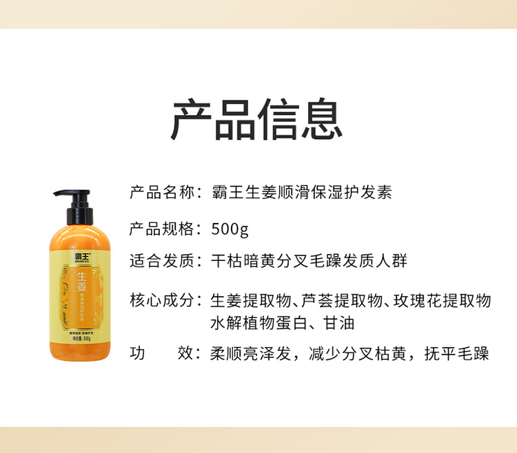 霸王生姜柔顺蓬松保湿香氛护发素500g 10101022248