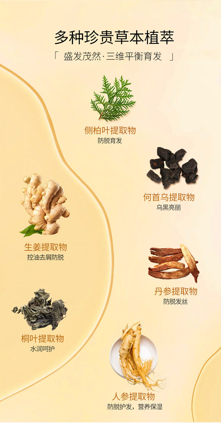 [主要成分]何首乌、侧柏叶、生姜、桐叶等提取物