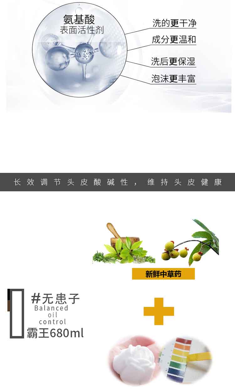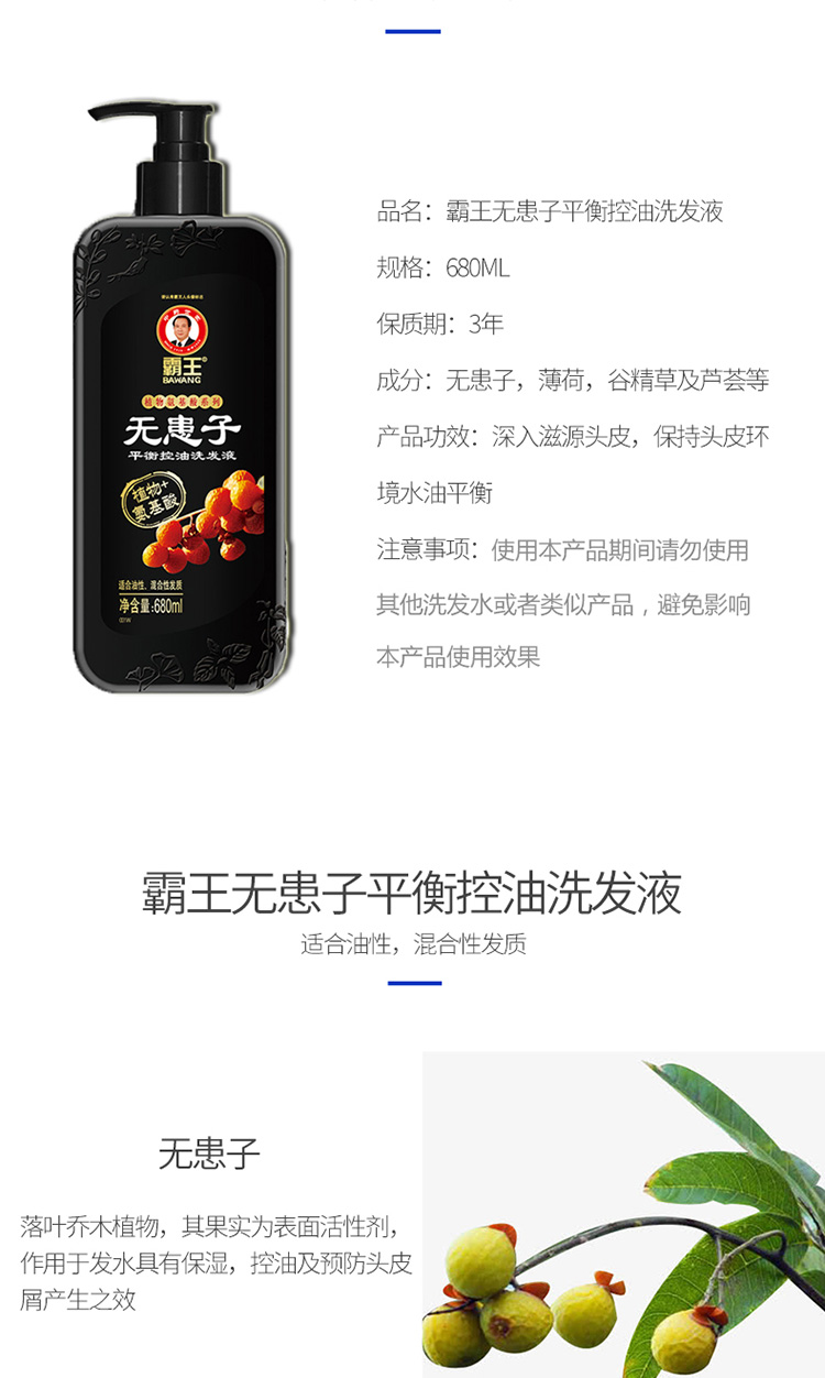• 霸王氨基酸洗发液 无患子平衡控油680ml 10101021651