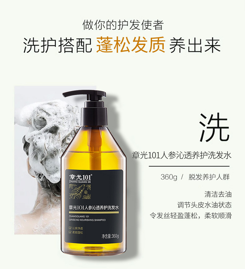 章光101人参沁透养护洗发水+草本润养护发素组合