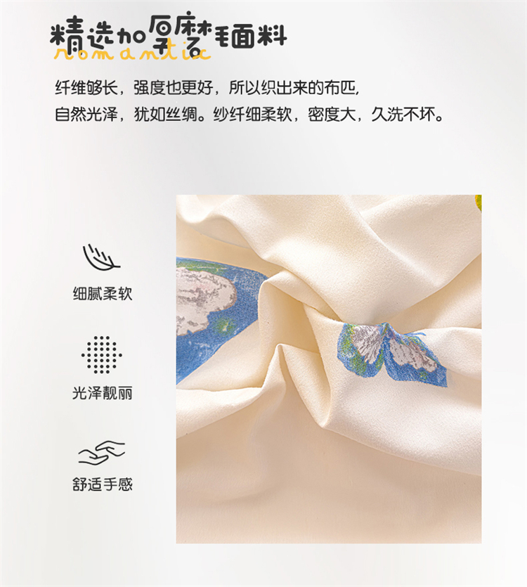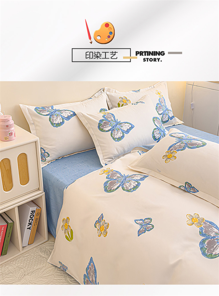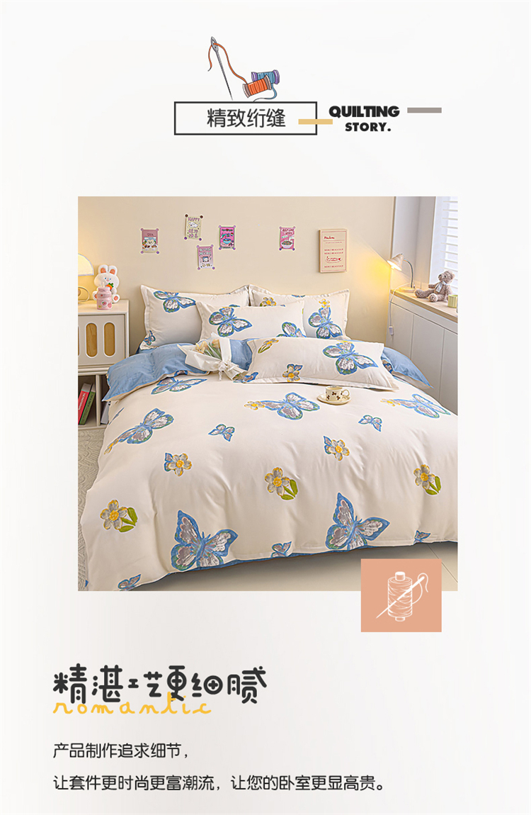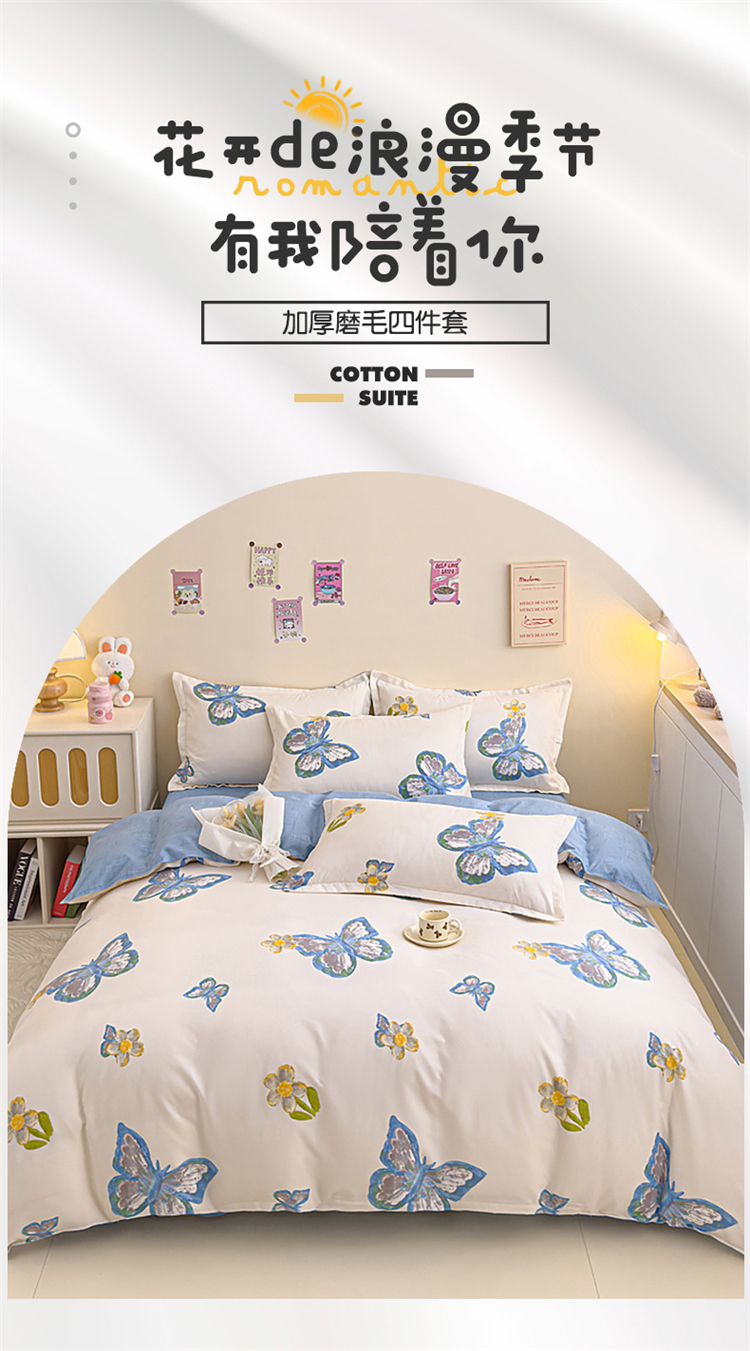 雅鹿加密磨毛印花四件套(花色:蝶梦)YLT2204