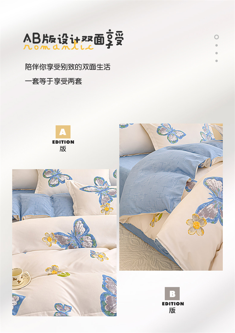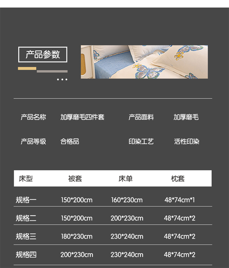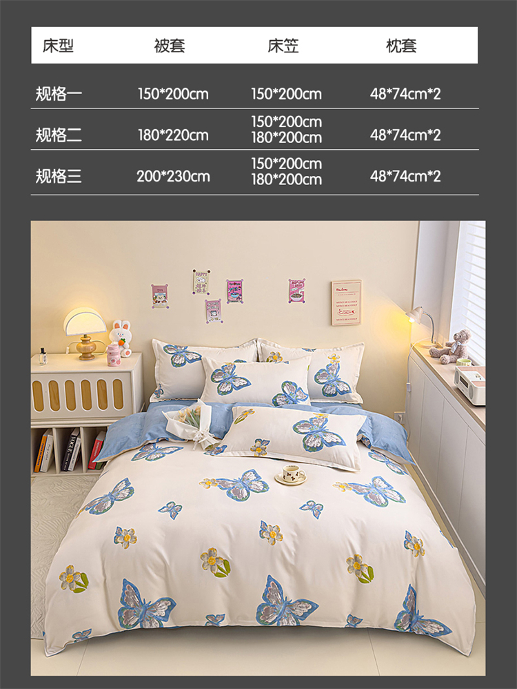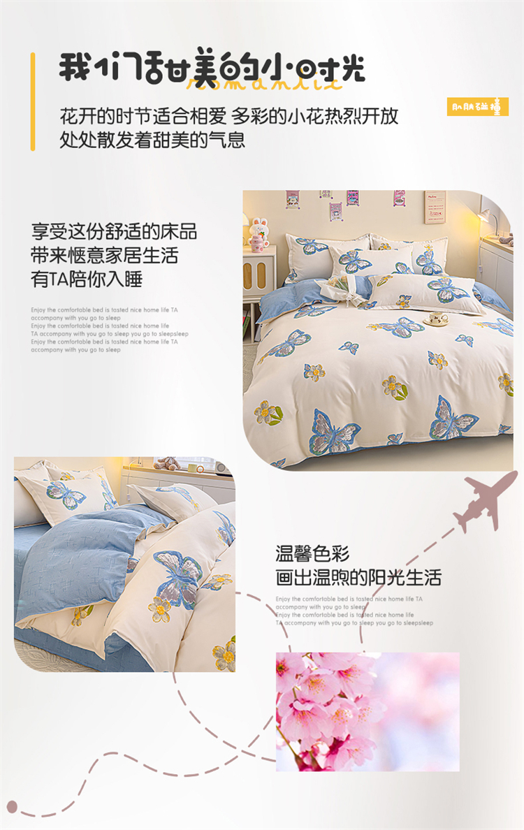 雅鹿加密磨毛印花四件套(花色:蝶梦)YLT2204