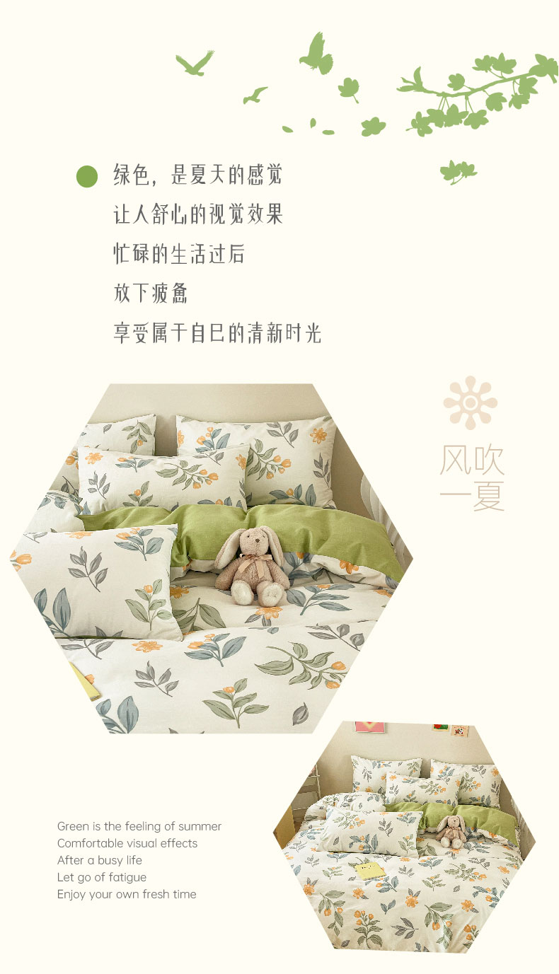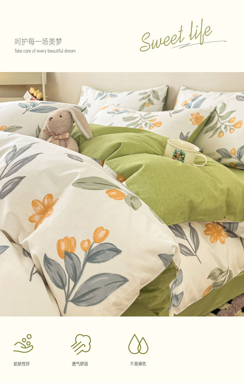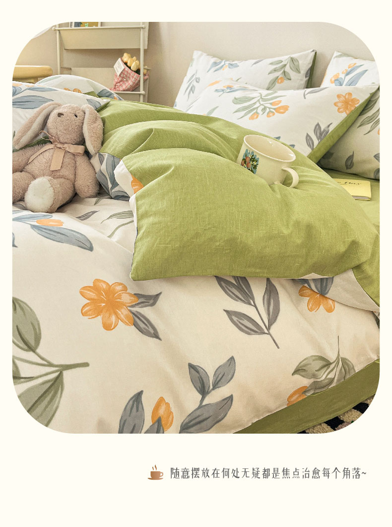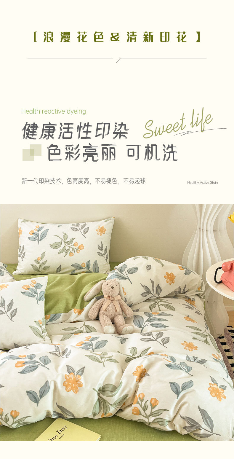 雅鹿全棉斜纹印花四件套(花色:春枝)YLT2306