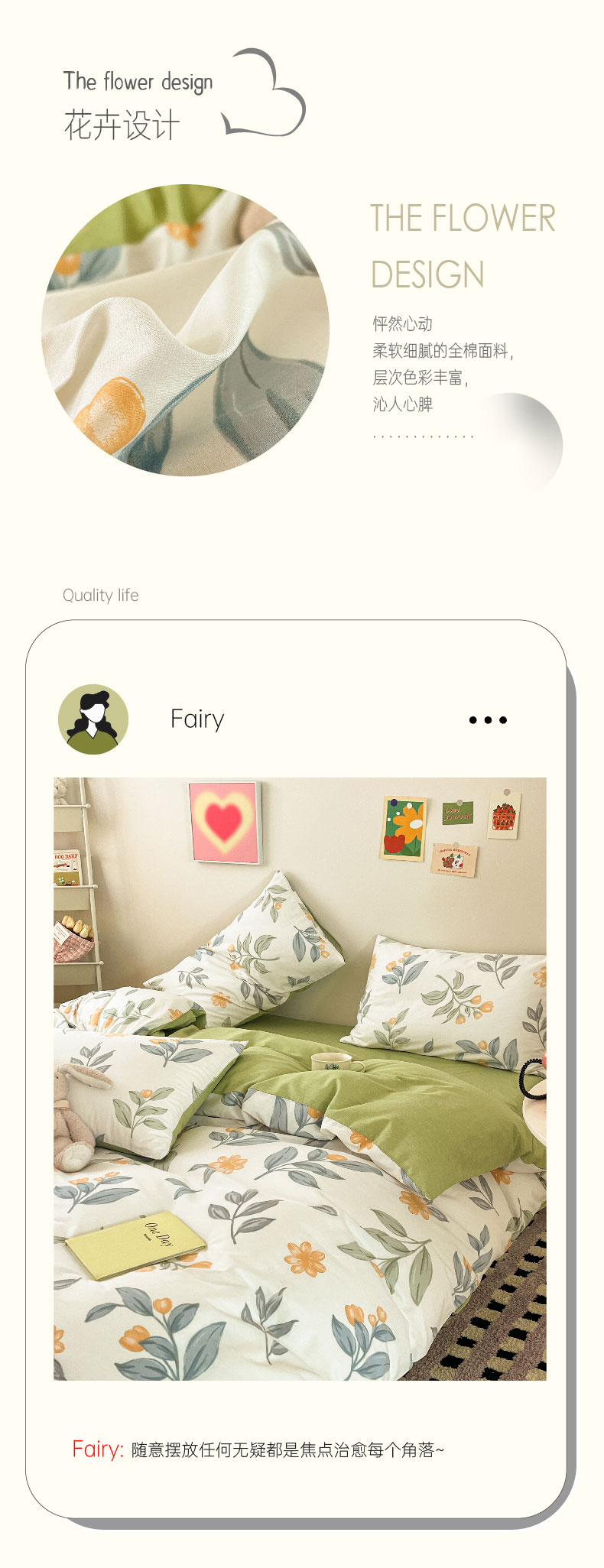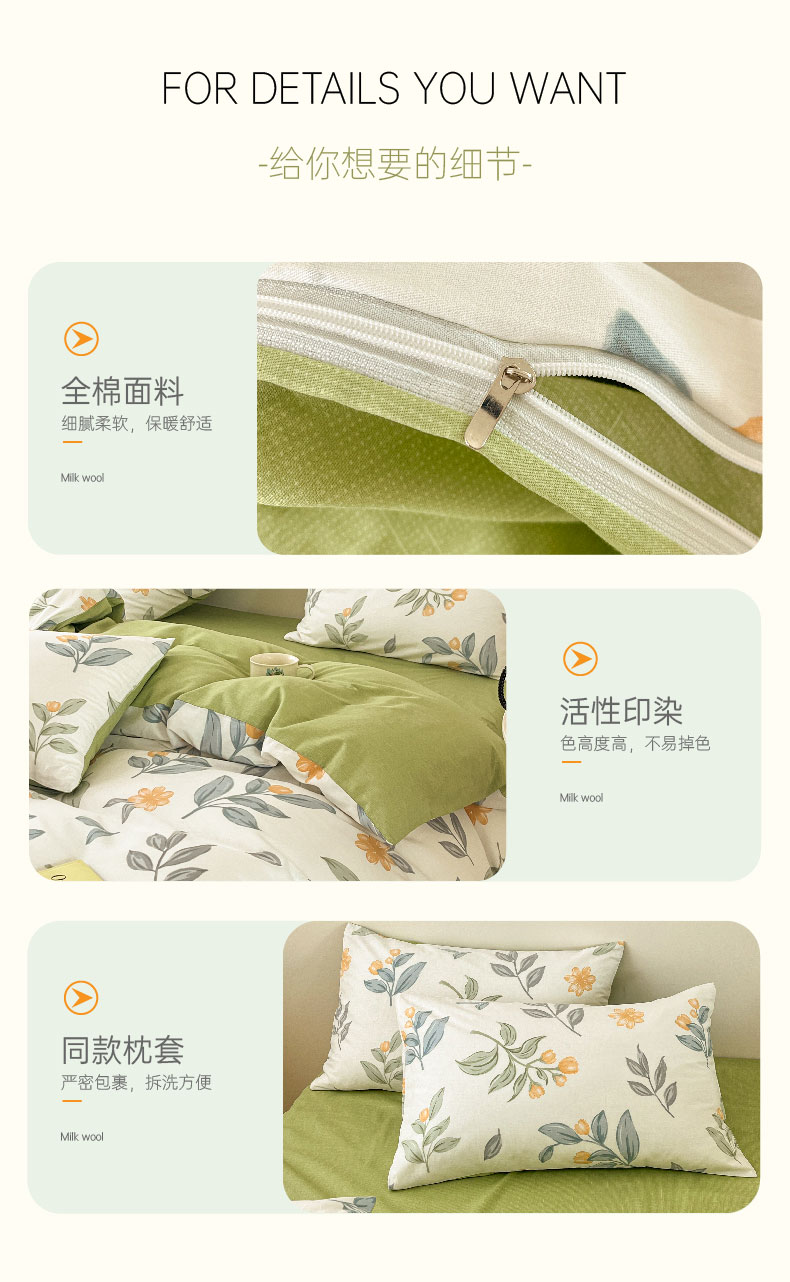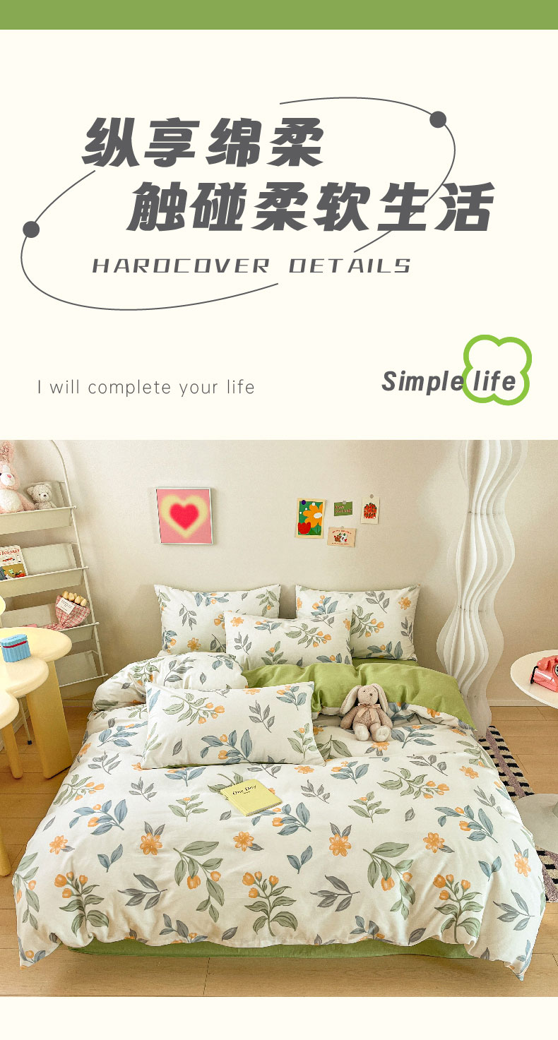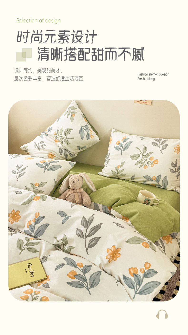 雅鹿全棉斜纹印花四件套(花色:春枝)YLT2306