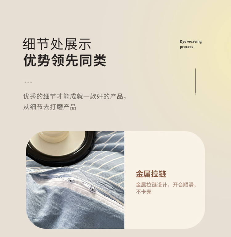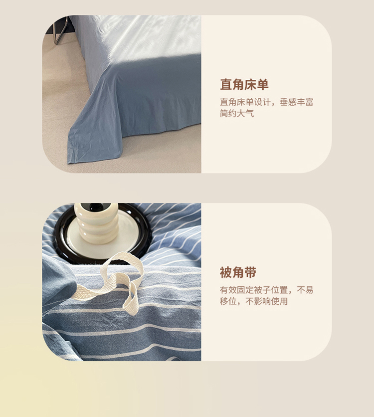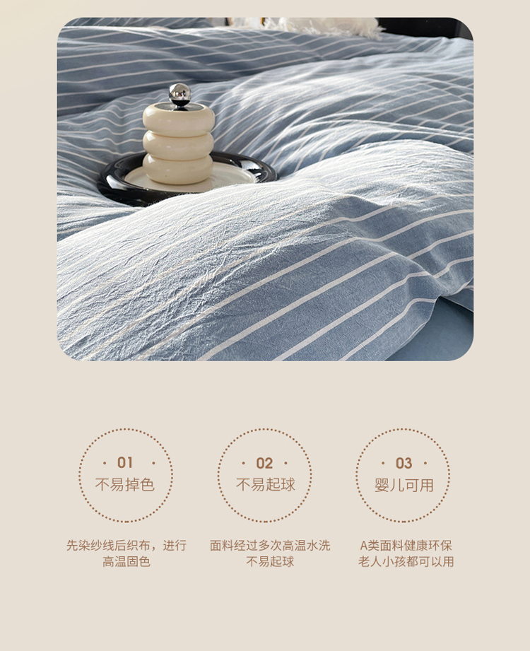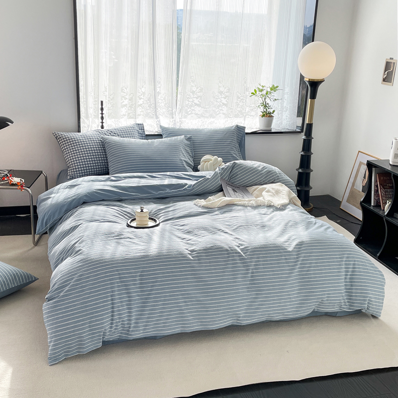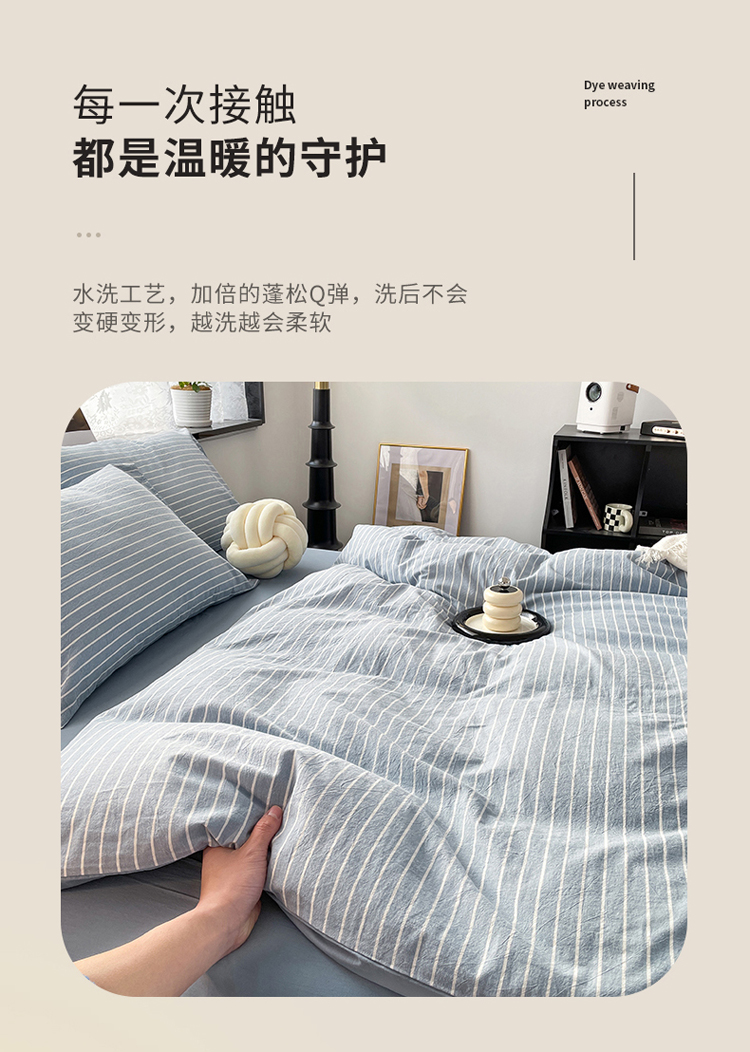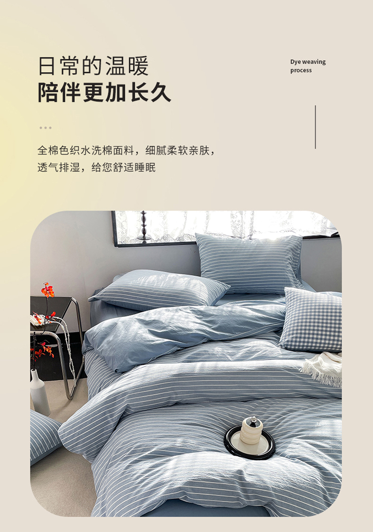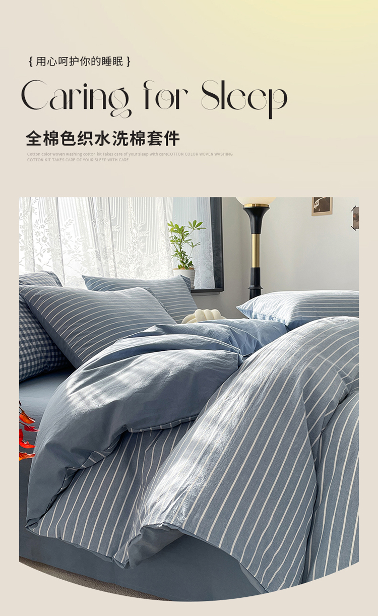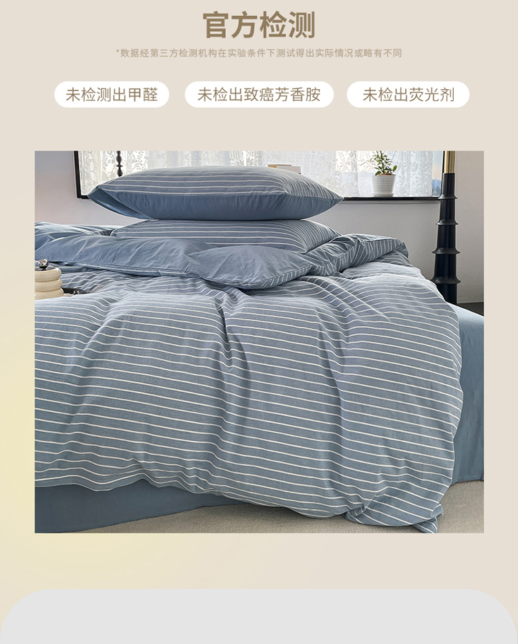 雅鹿无印水洗全棉四件套(花色:素雅-蓝条)YLT2401