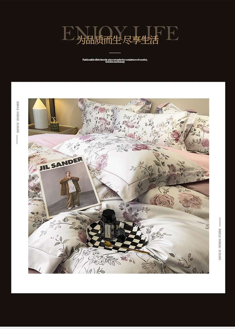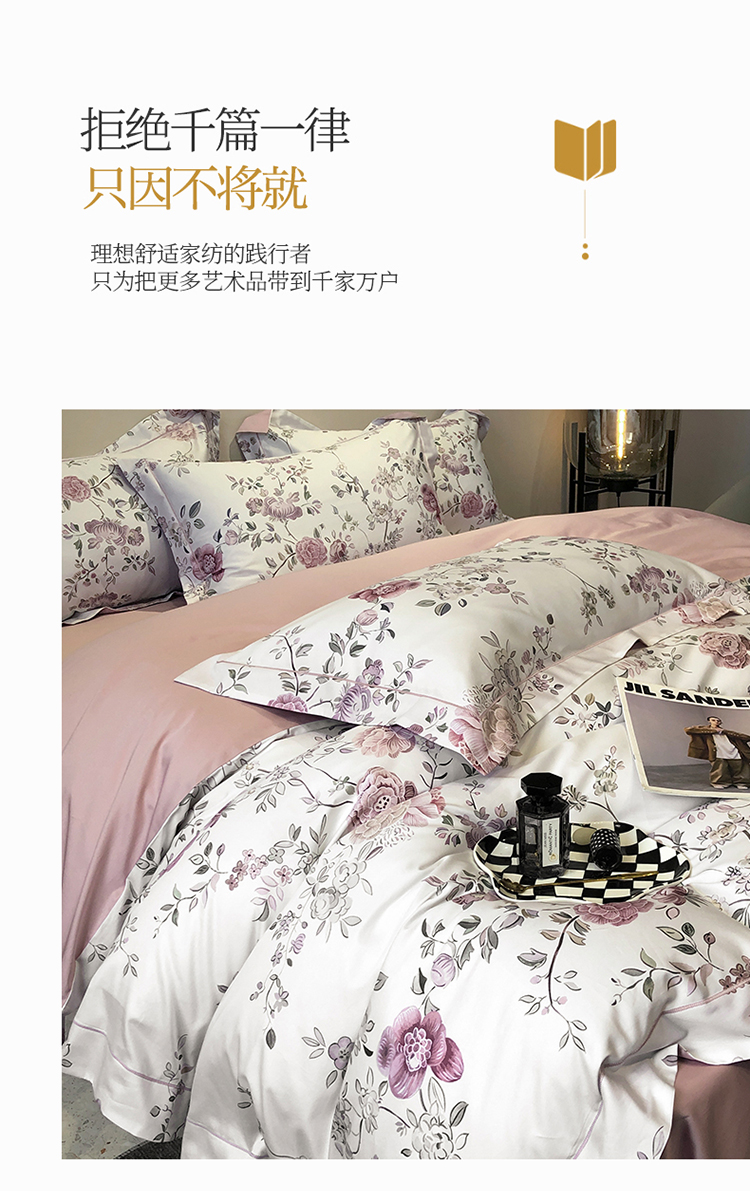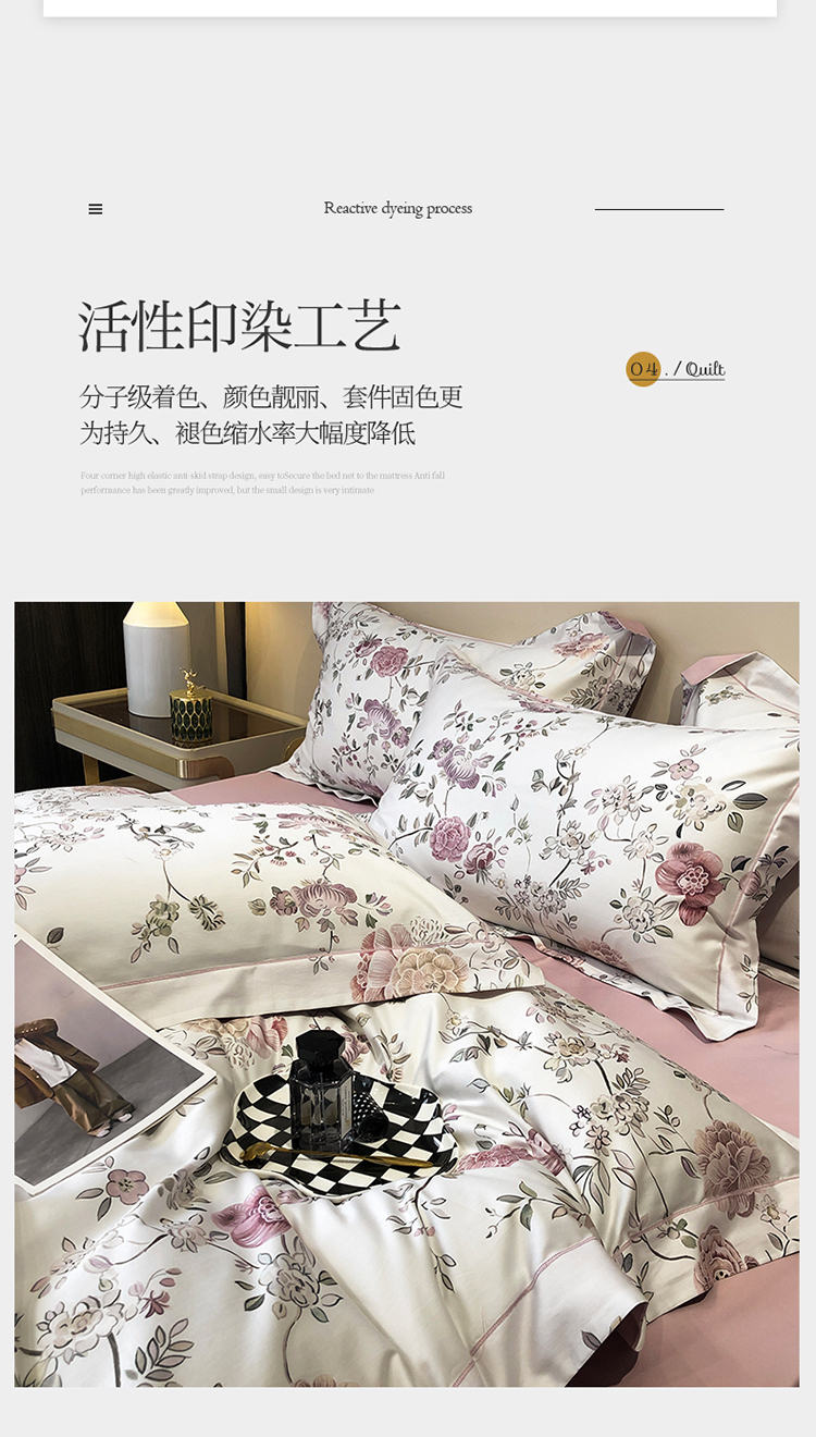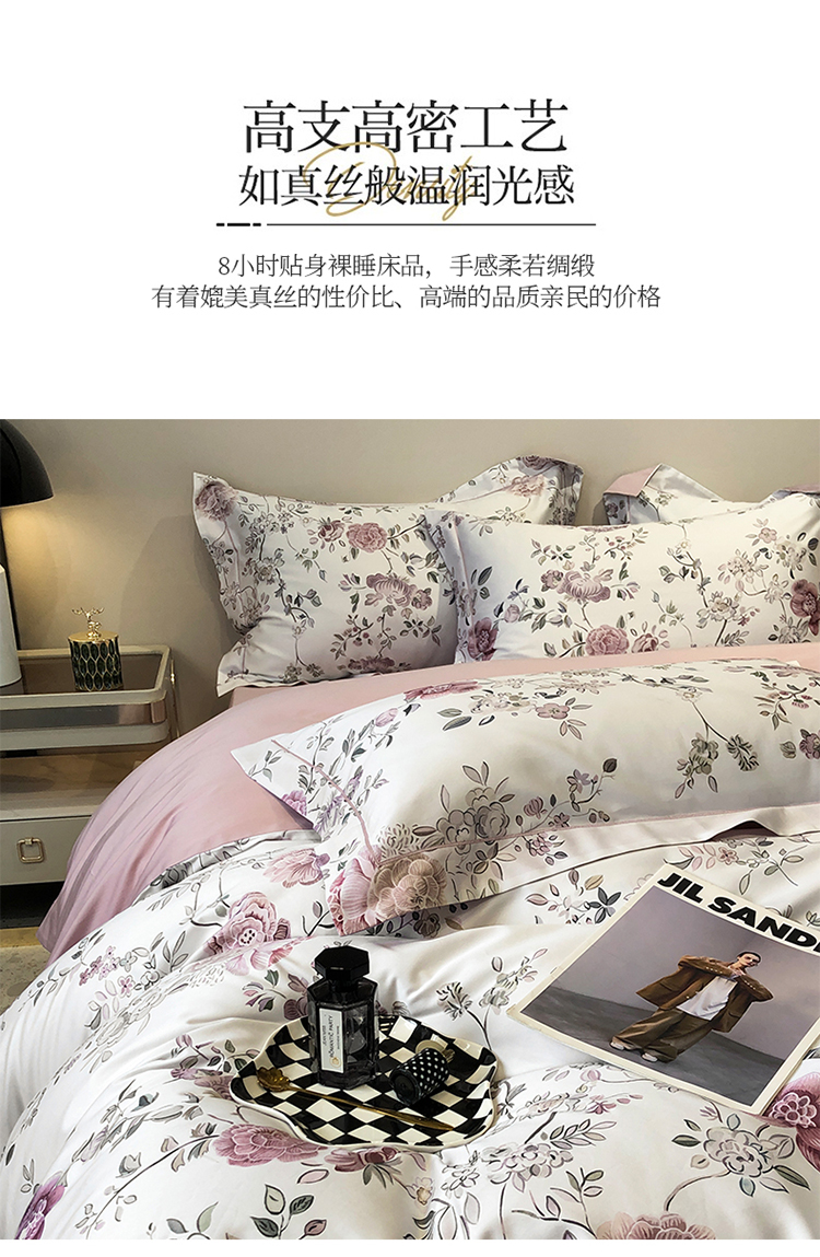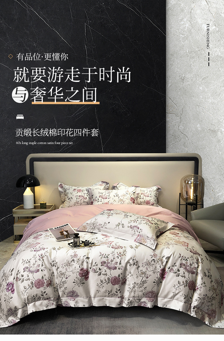 雅鹿60支贡缎长绒棉四件套(花色:微丽)YLT2510