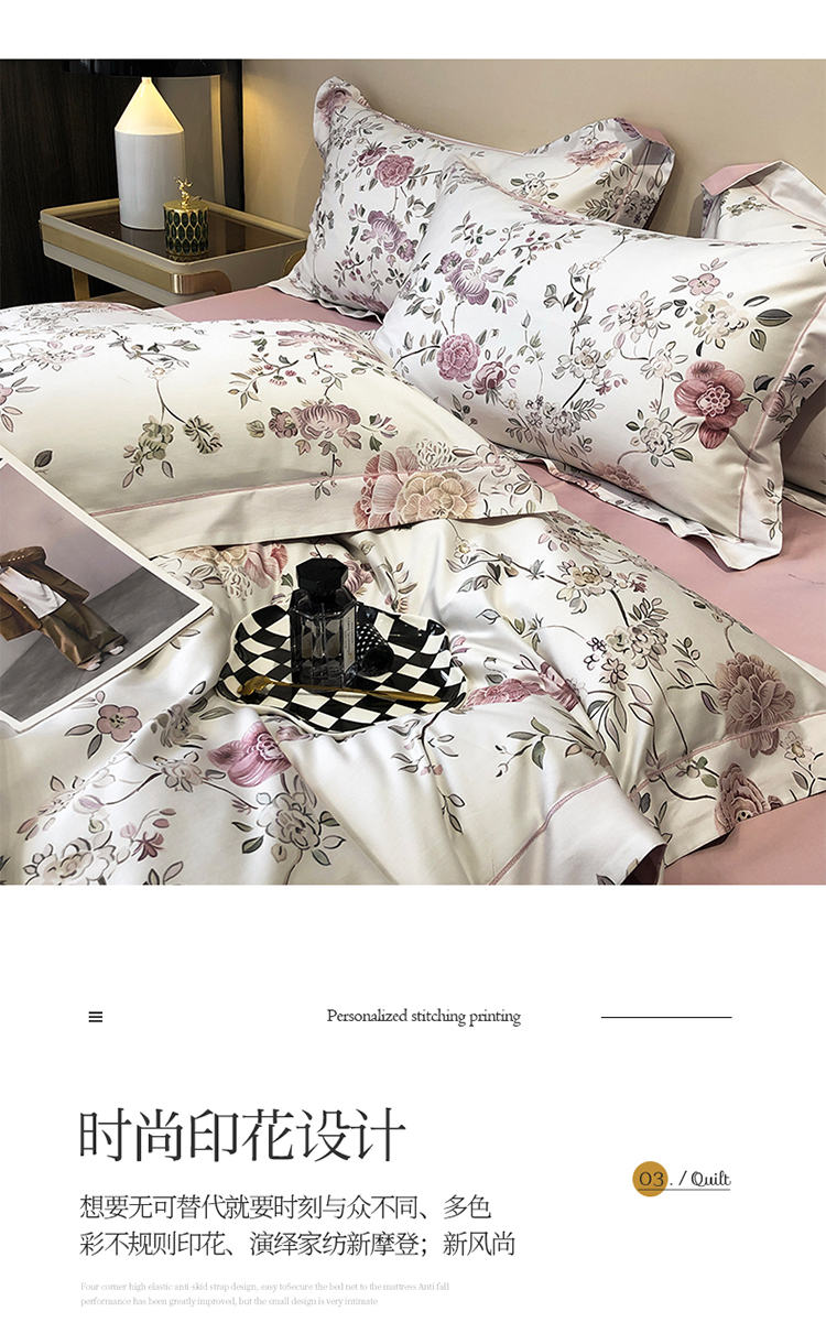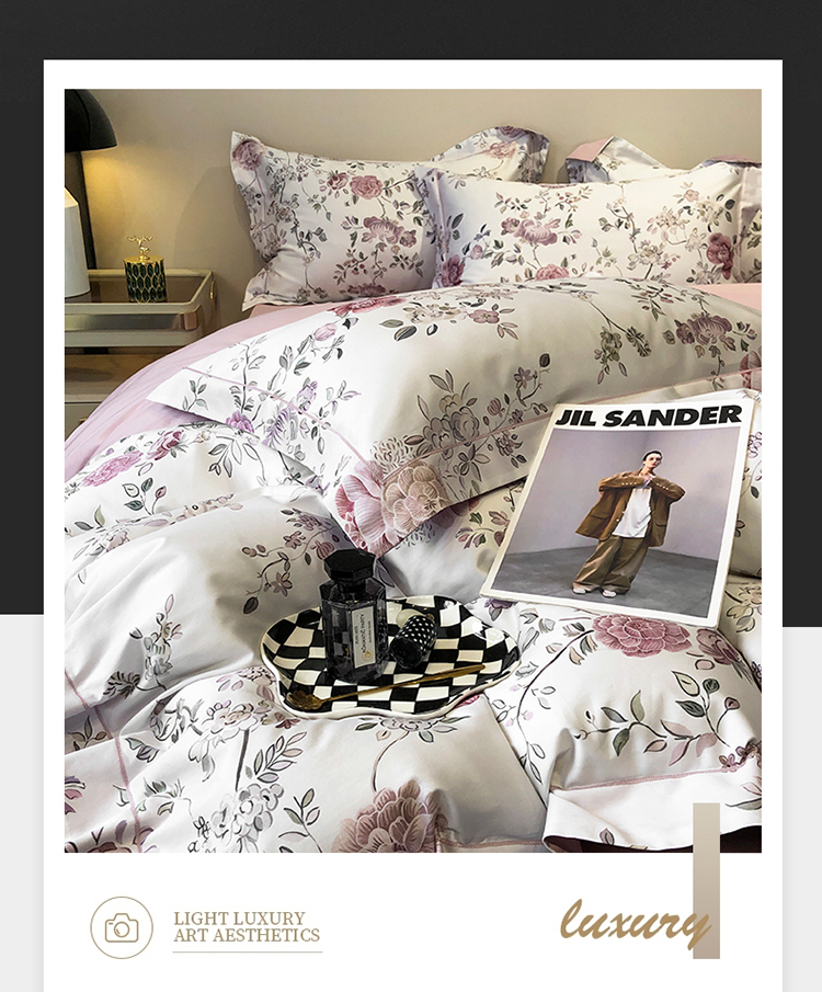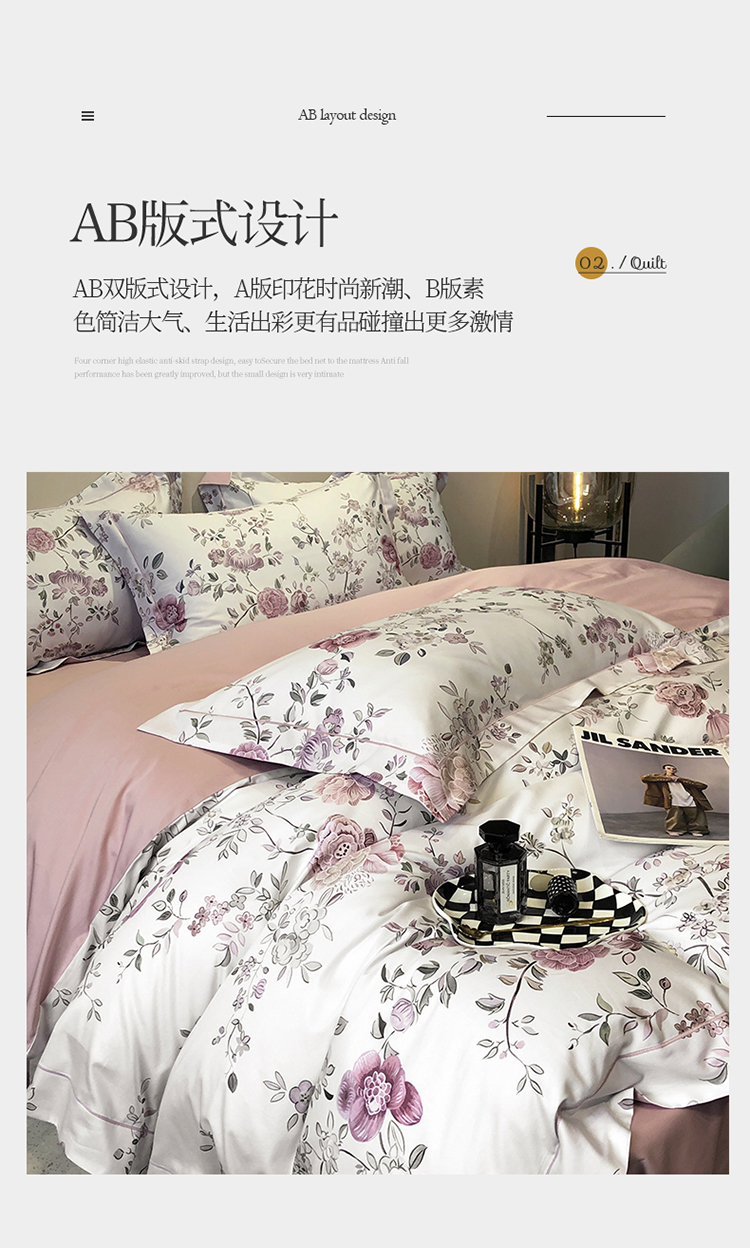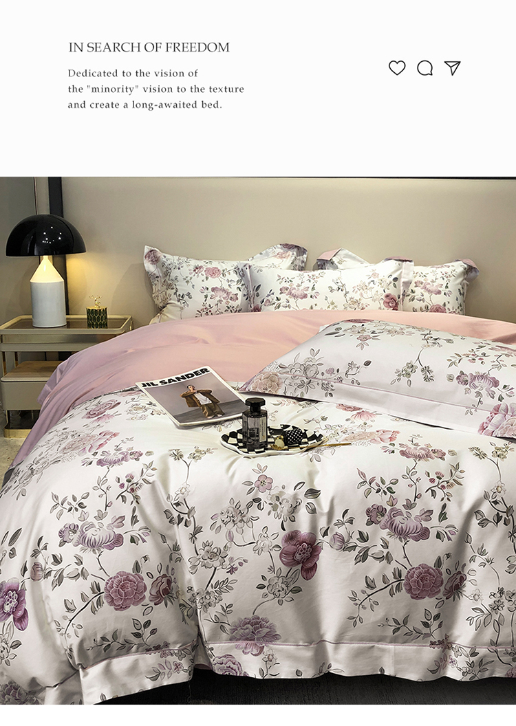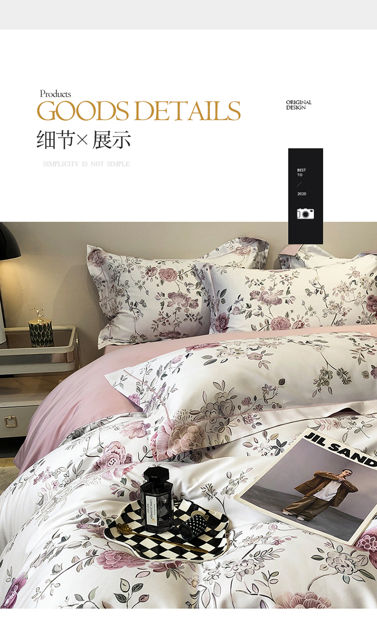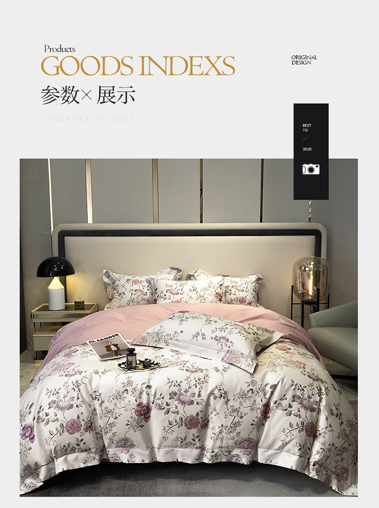 雅鹿60支贡缎长绒棉四件套(花色:微丽)YLT2510