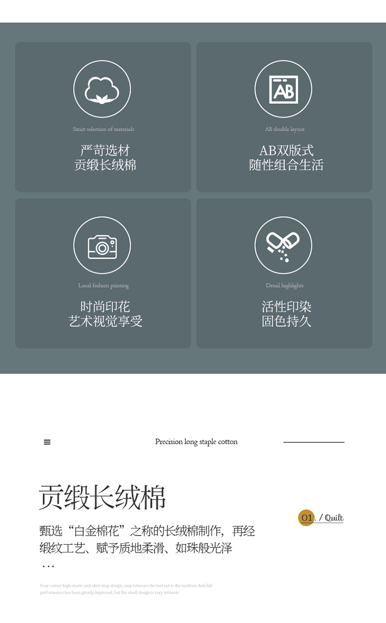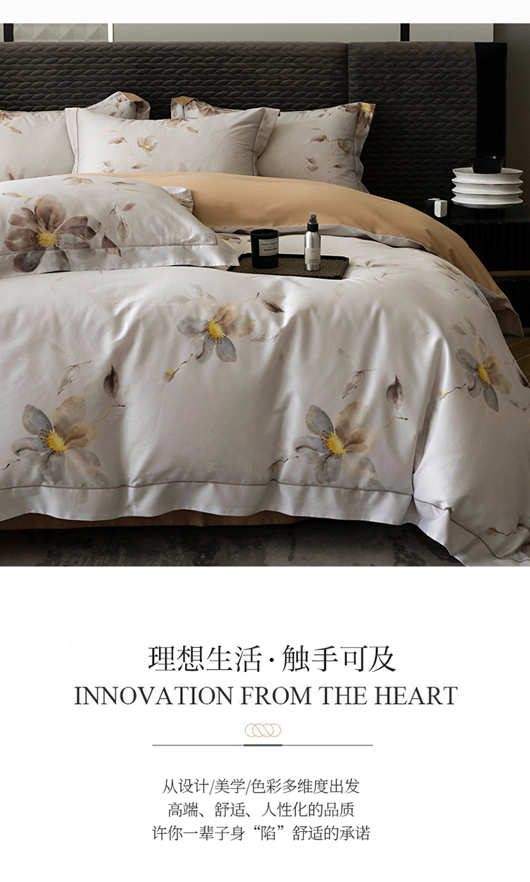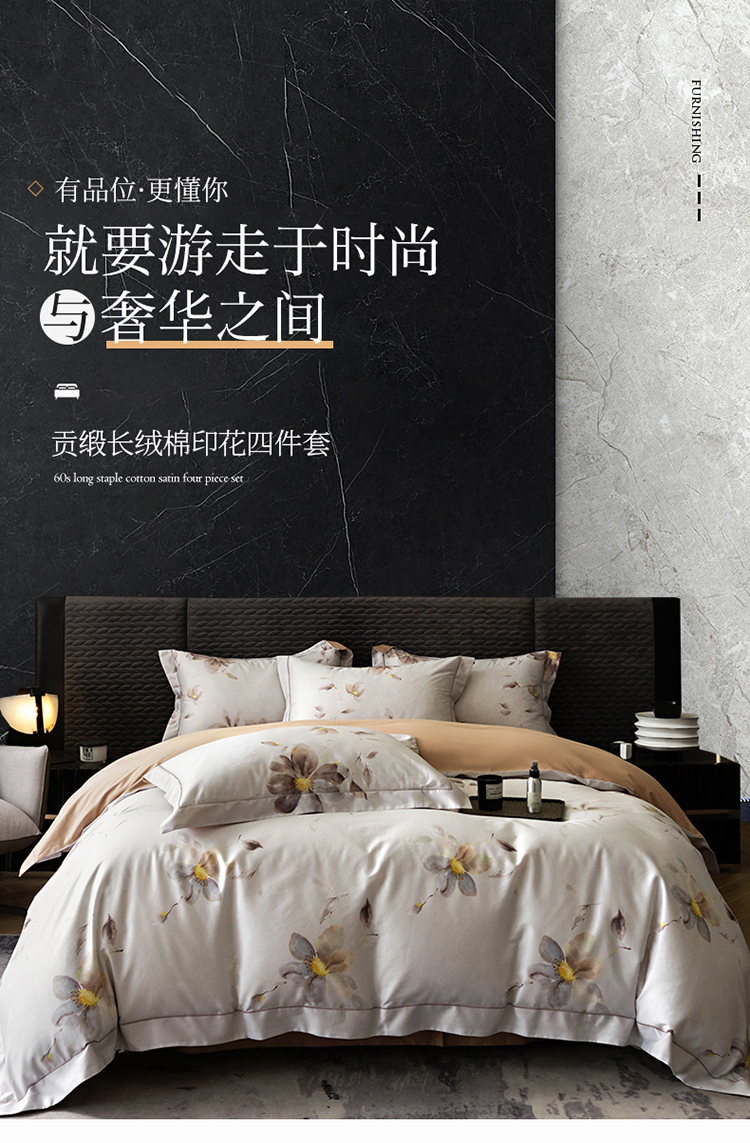 雅鹿60支贡缎长绒棉四件套(花色:觅海)YLT2510