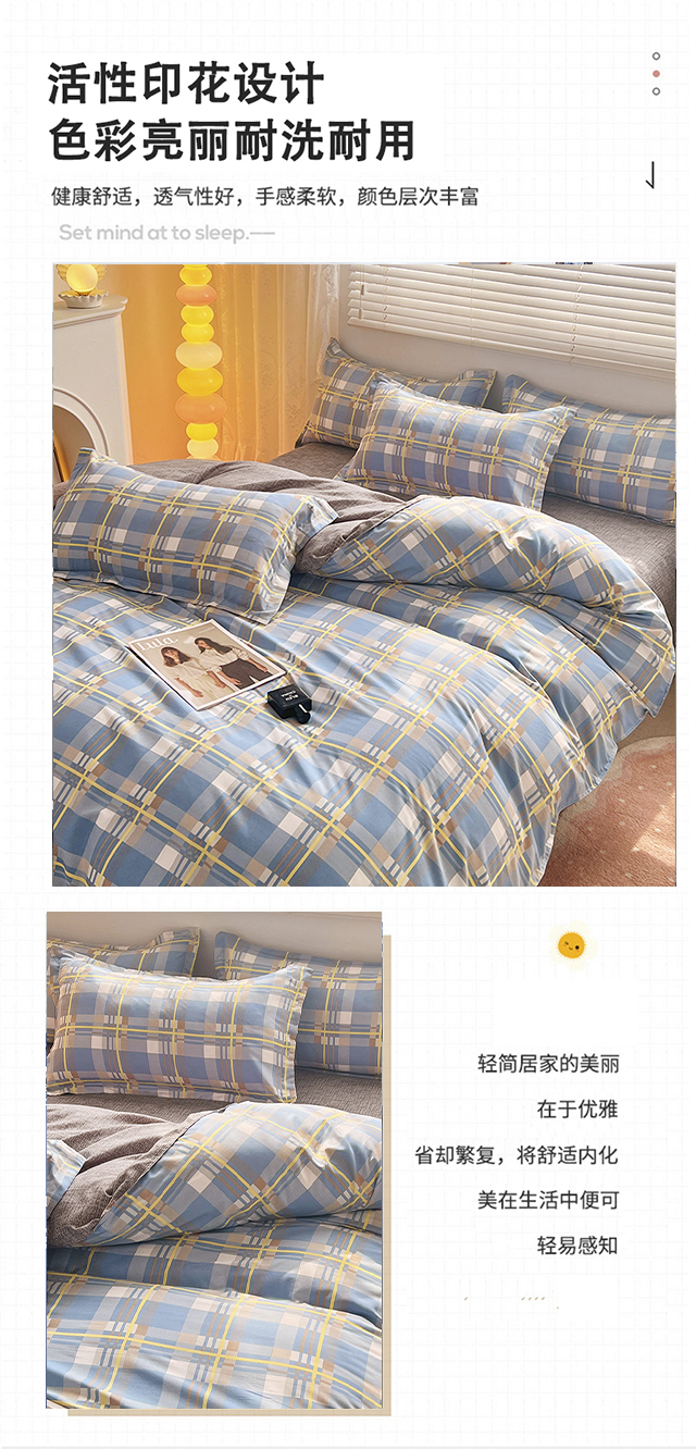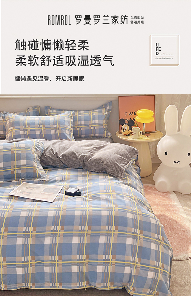 罗曼罗兰芦荟棉四件套 英伦风尚