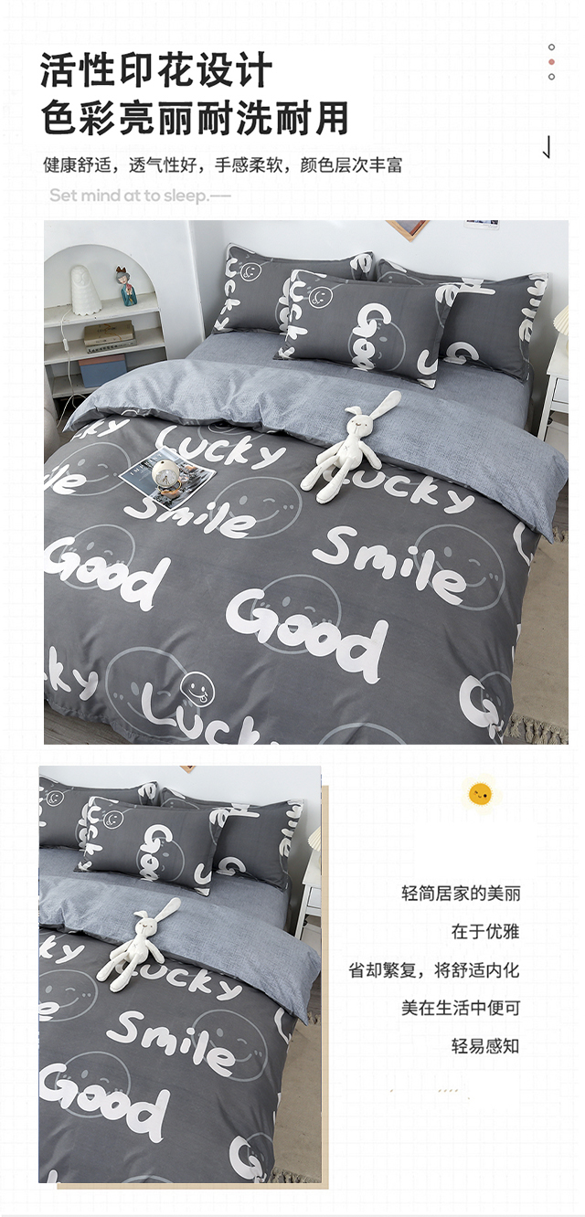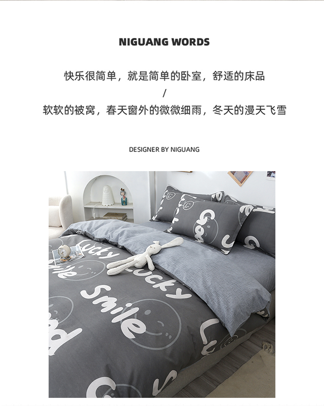 罗曼罗兰芦荟棉四件套 小幸运-灰