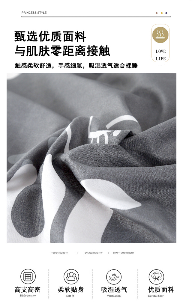 不同于普通的纯棉或涤纶材质,芦荟棉添加了芦荟纤维,将芦荟的天然特性融入每一根纤维中,为你的皮肤带来最自然的触感和护理。每一次翻身都能感受到床单带来的温柔呵护,简直比五星级酒店还要奢华舒服。它的生产过程低碳环保,是我们绿色生活理念的实践,无论是极简主义者还是追求时尚潮流的你,芦荟棉四件套以简约的设计征服所有人的心。轻松搭配各种家居风格,让你的卧室焕然一新。