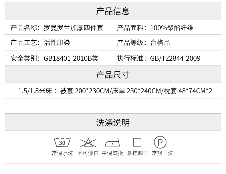 罗曼罗兰加厚磨毛印花四件套 摩登格调