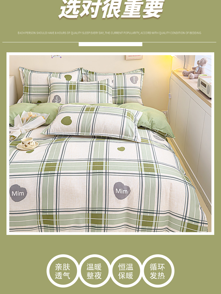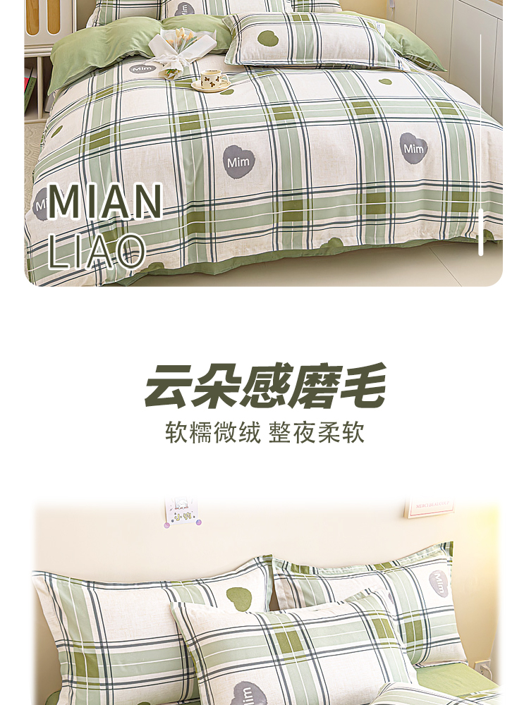 舒适的面料,亲肤又透气,在夜晚给你最温柔的守护!钻进被窝,就像被轻轻柔柔包裹着的感觉,触感软滑,十分亲肤细腻。拥抱这套磨毛四件套,就像投入了云朵的怀抱。在这个季节,给床铺添上一份温暖的守护,加厚不是为了隔离寒冷,而是为了拥抱舒适的冬日暖阳,每一根细丝都经过磨毛处理磨毛四件套面料厚实,做过缩水处理,面料挺括弹性强。