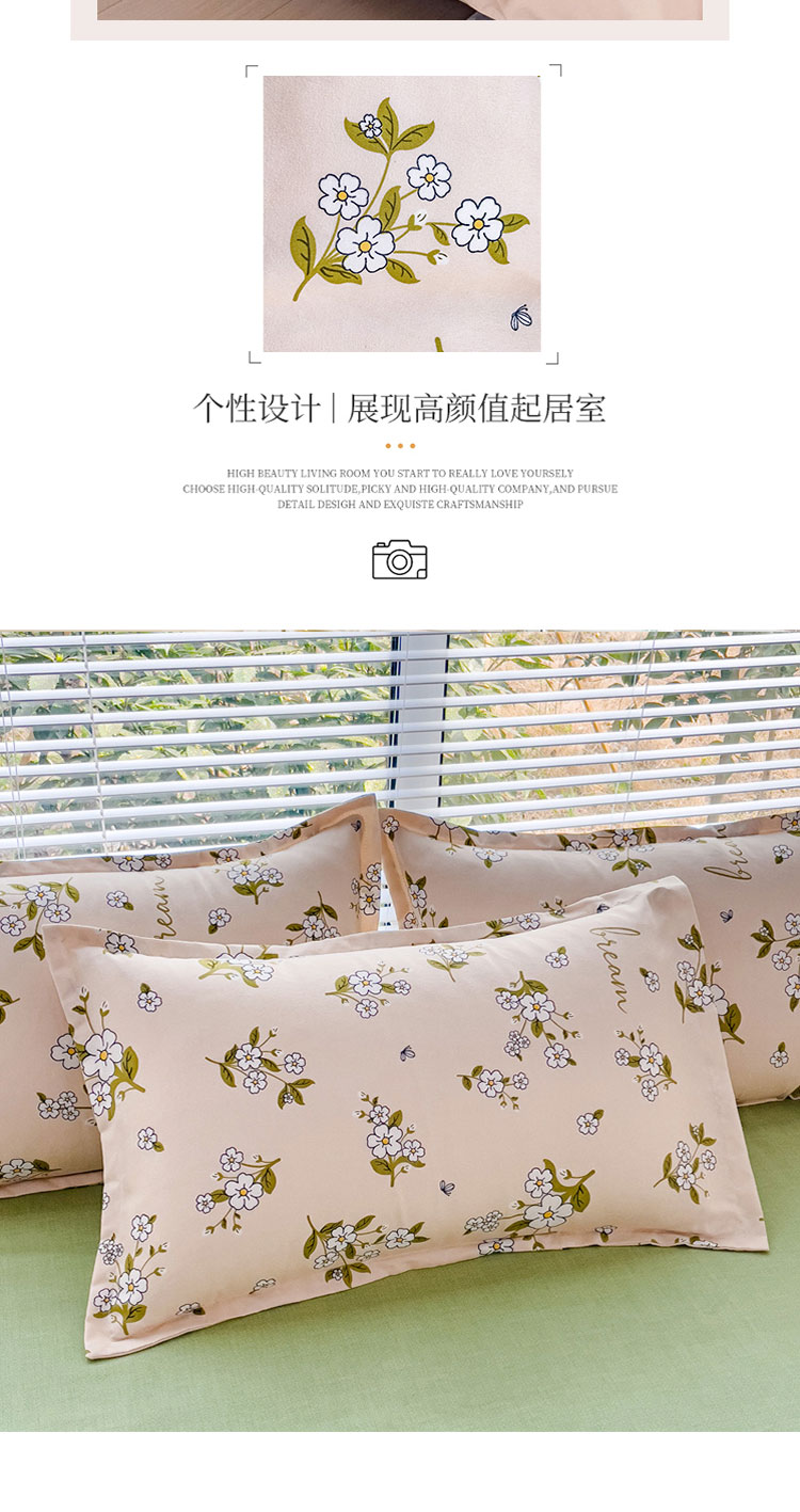 清新碎花森系风,浅粉底色配白色小花,搭配清新绿边,像把春日花园搬上床,营造治愈森系氛围,卧室秒变温馨小窝。"