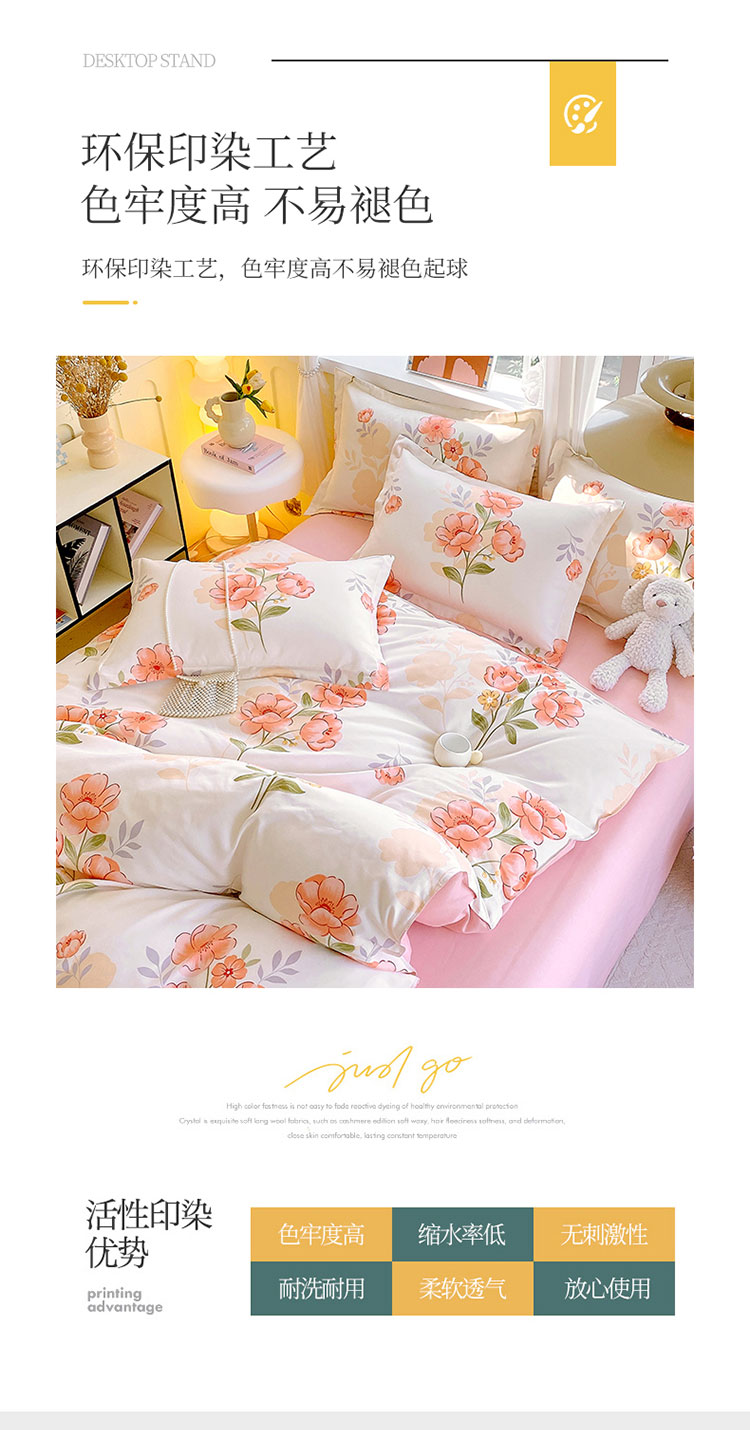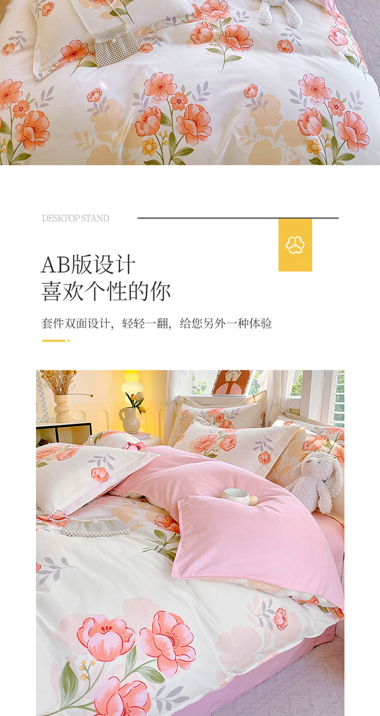 粉橘花朵铺满套件,配色柔和清新,自带田园浪漫感,铺上床瞬间点亮卧室,每天睁眼都是好心情。清新花色不挑家具风格,不管是简约风还是甜美风卧室,都能和谐融入,一键升级温馨感 。