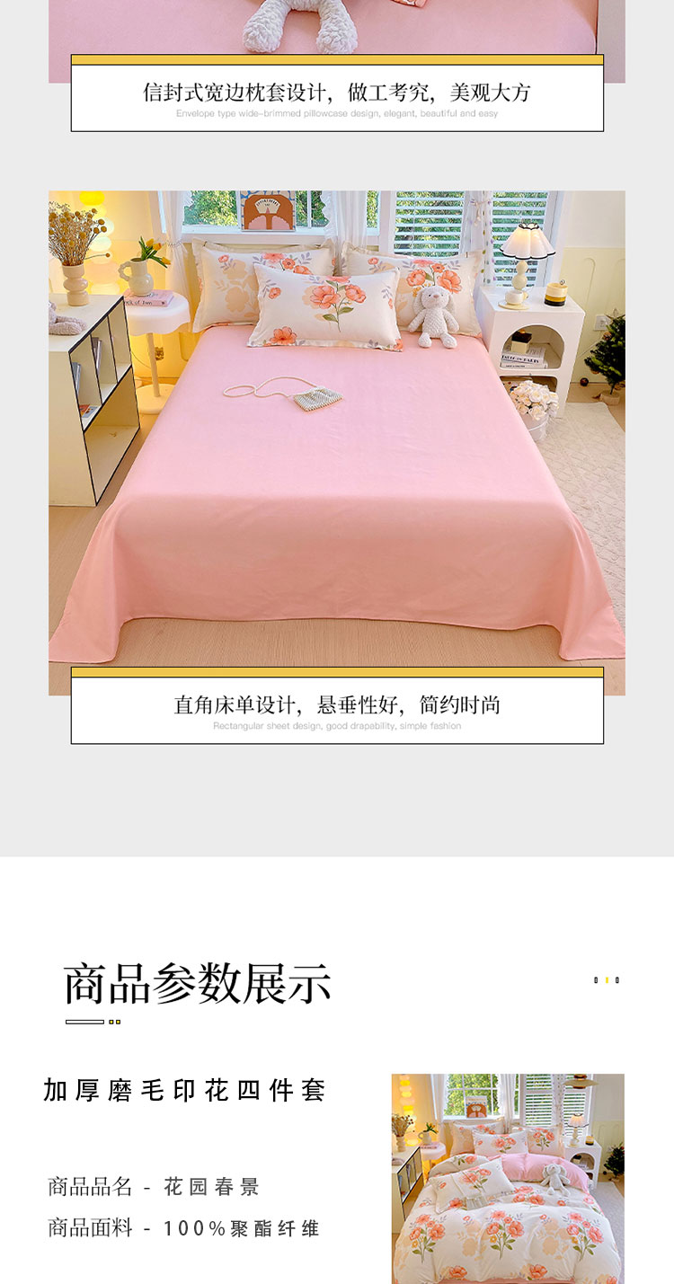 每一根细丝都经过磨毛处理,面料厚实,做过缩水处理,面料挺括弹性强。拥抱这套磨毛四件套,就像投入了云朵的怀抱。磨毛面料结构紧密,抗起球、耐洗涤,久用不易变形、褪色,经得住日常频繁使用,长久保持良好品相,性价比出色 。