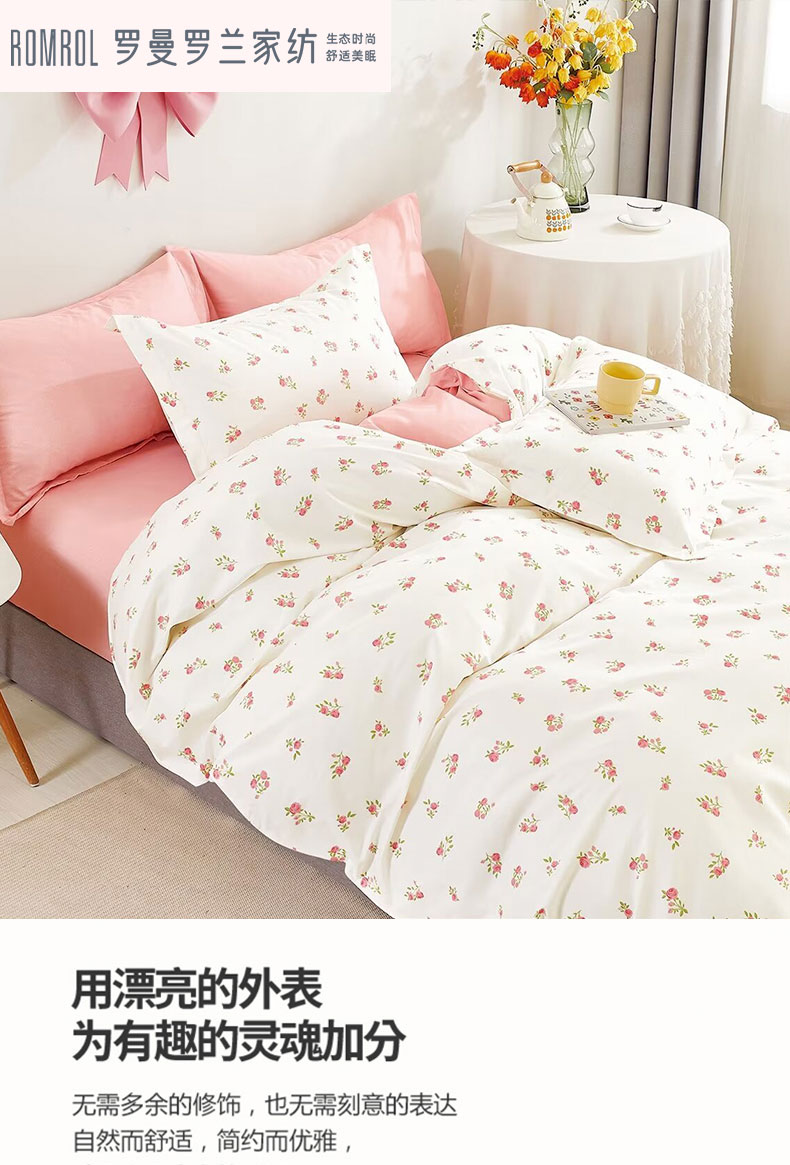 罗曼罗兰全棉四件套 淡妆初夏 红-4