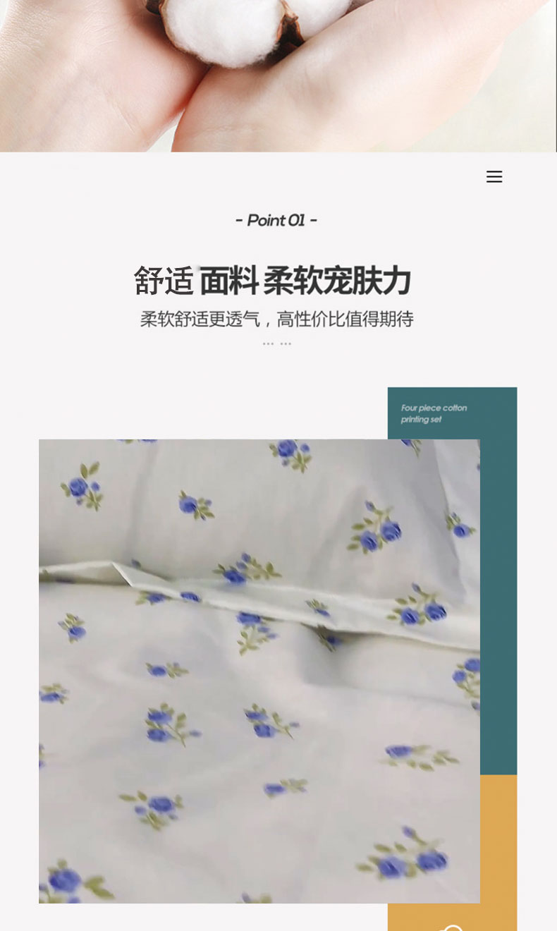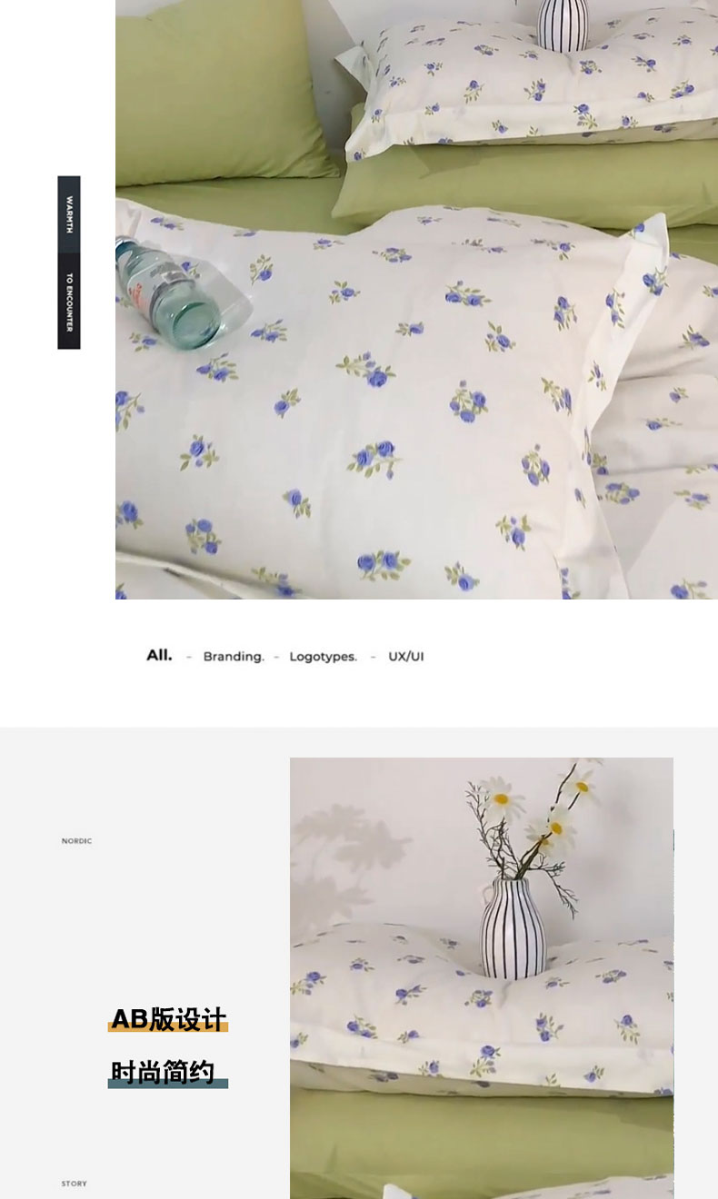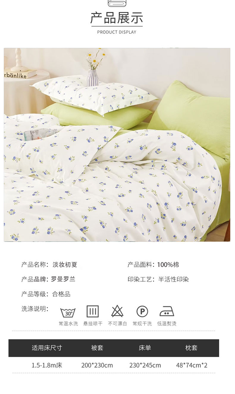 罗曼罗兰全棉四件套 淡妆初夏 蓝-4