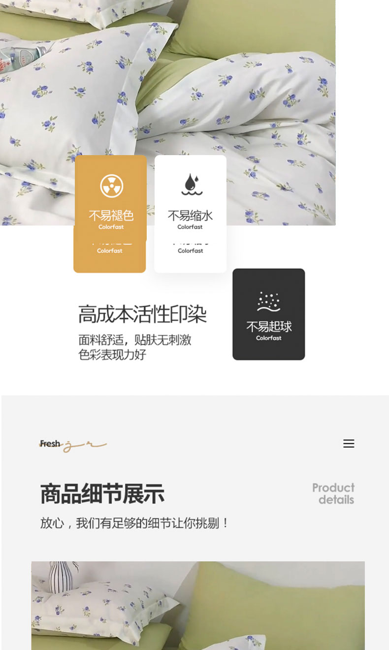 淡雅清新的小碎花,让平淡的生活多一丝趣味。柔软亲肤,不掉色不起球。形式上的意与美,打破传统纯色床单的单调与沉闷感,每一处设计都是小心机,时尚又不乏格调,轻松提升卧室品位。"