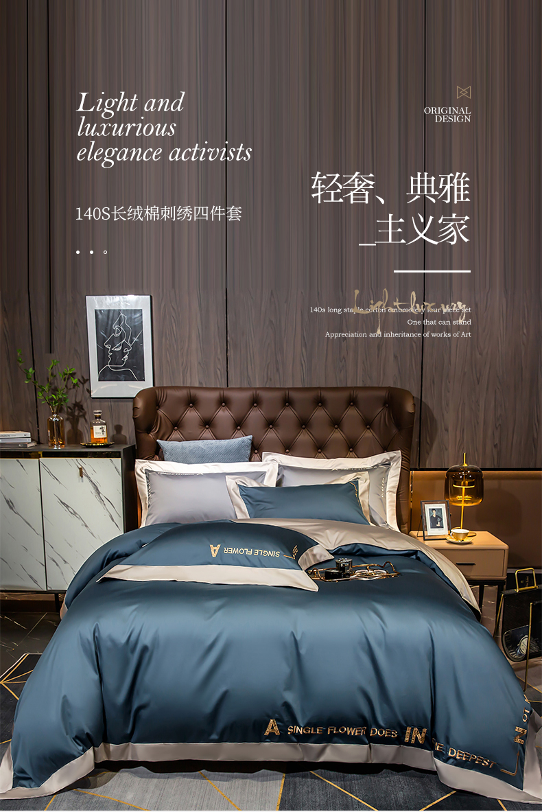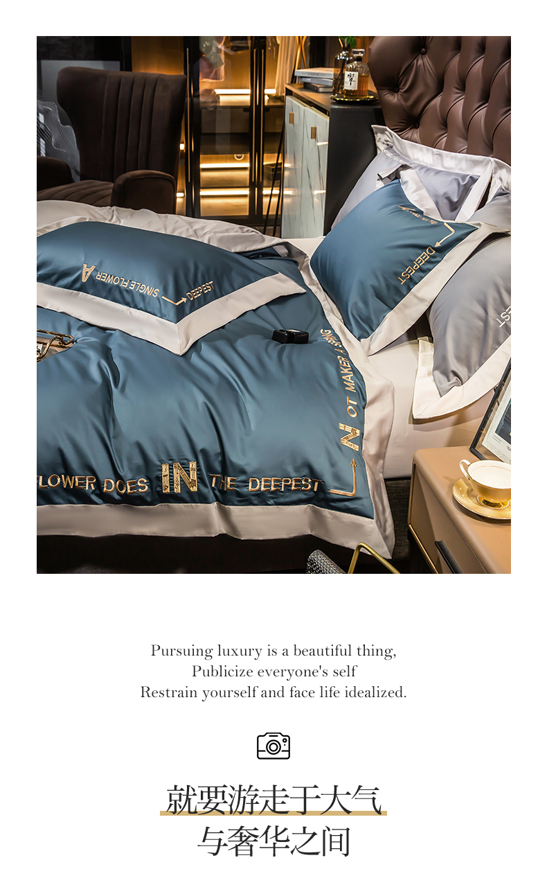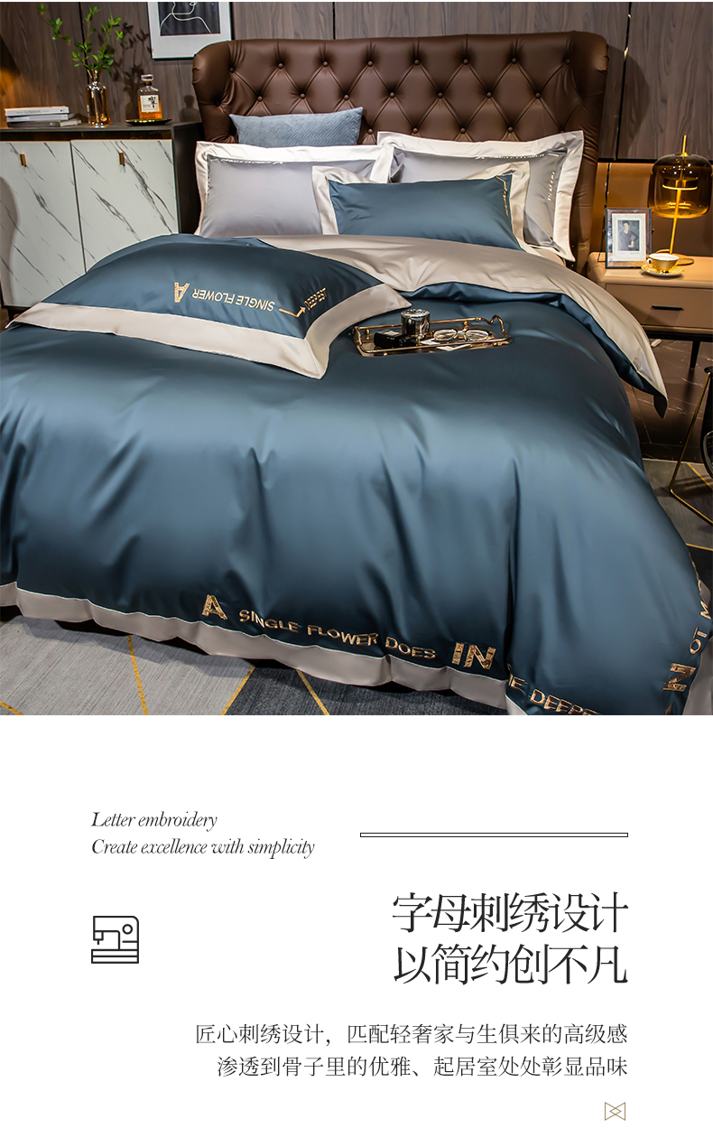 杉杉家纺长绒棉刺绣四件套-星梦蓝 SS-TJ1042