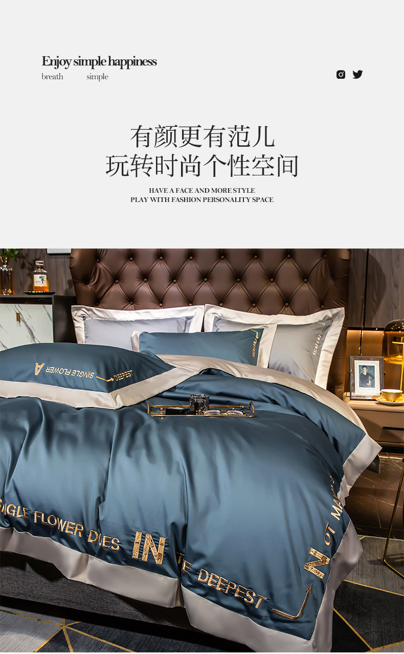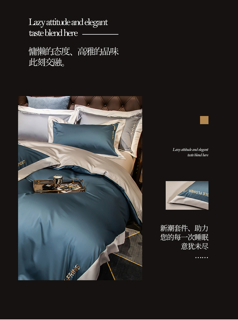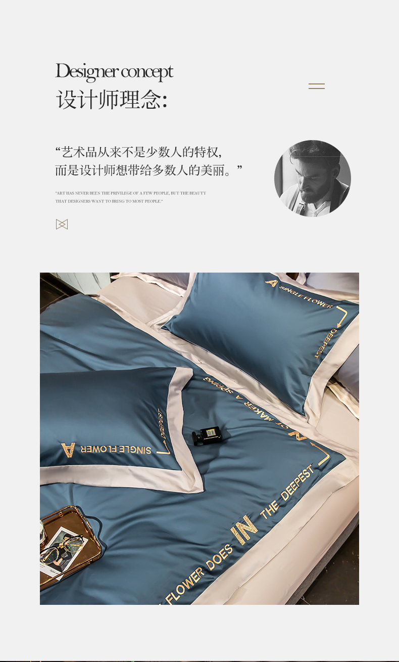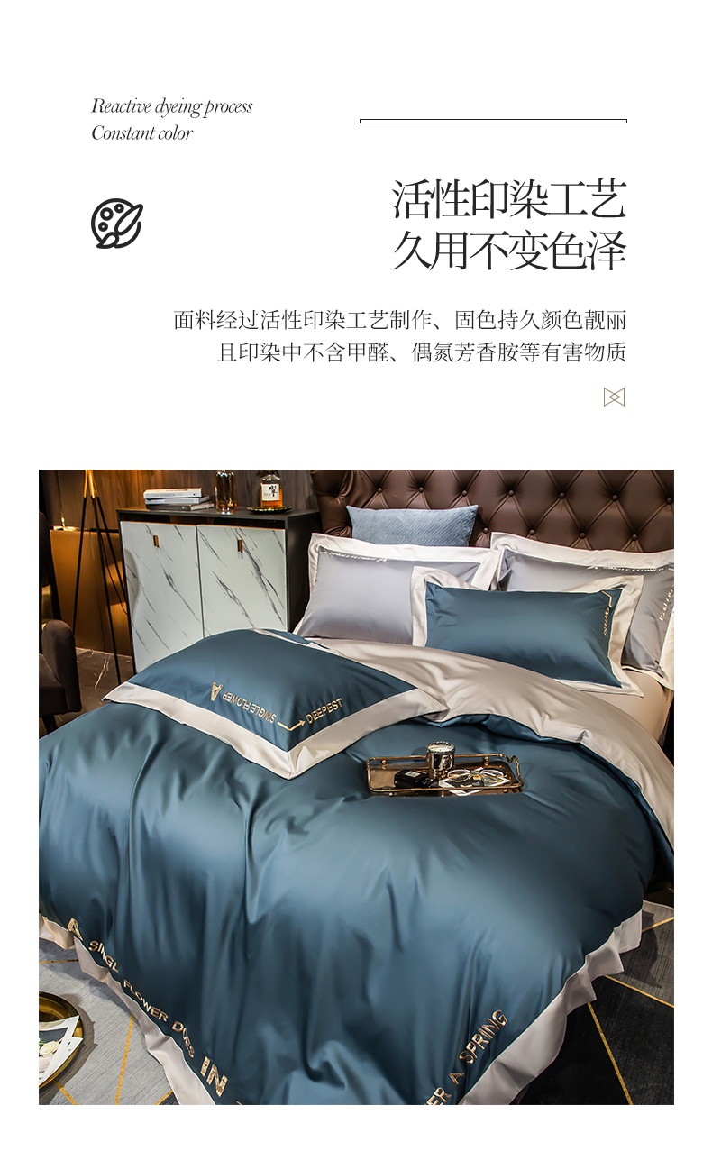 杉杉家纺长绒棉刺绣四件套-星梦蓝 SS-TJ1042